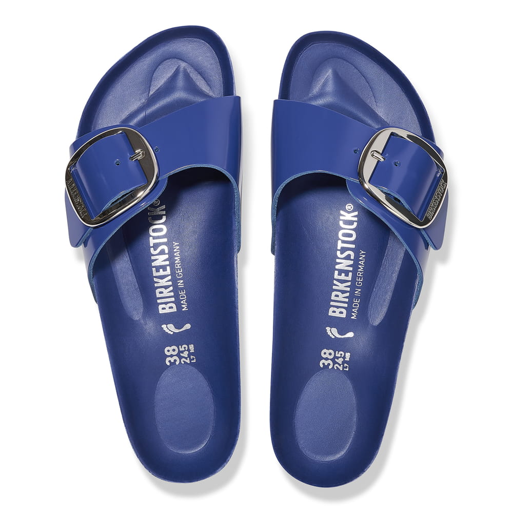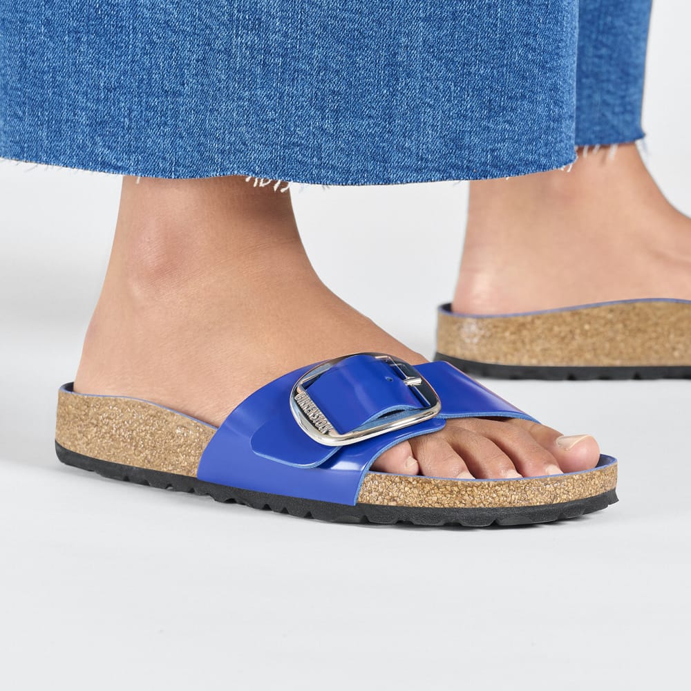 The BIRKENSTOCK Madrid is a veritable classic that delights the world of fashion with its minimalist design. The Big Buckle version features a large, elegant pin buckle. The semi-exquisite footbed is fully lined with soft piumato leather, making it exceptionally comfortable. The upper is made from high-quality natural leather with a shiny patent coating.
