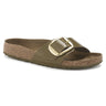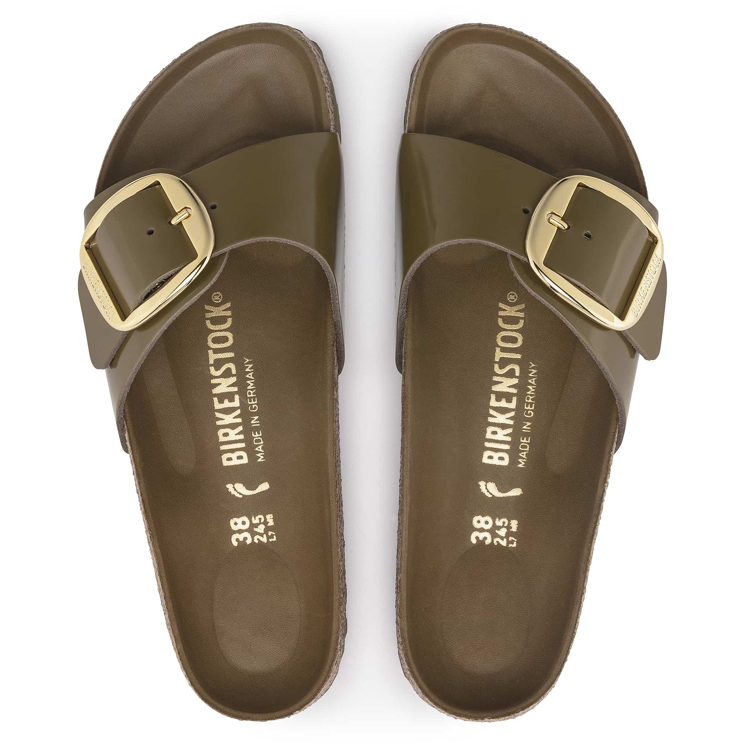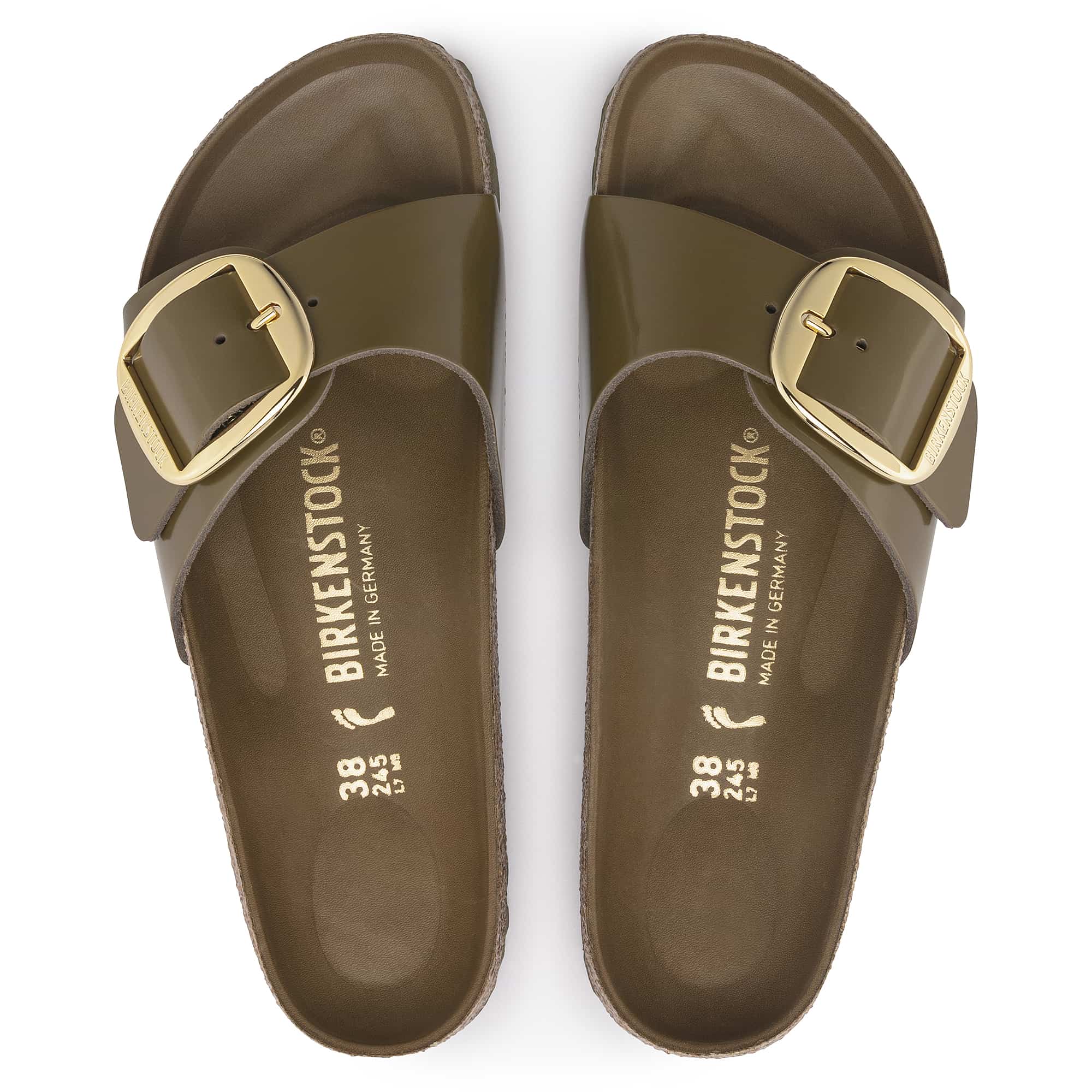 The BIRKENSTOCK Madrid is a veritable classic that delights the world of fashion with its minimalist design. The Big Buckle version features a large, elegant pin buckle. The semi-exquisite footbed is fully lined with soft piumato leather, making it exceptionally comfortable. The upper is made from high-quality natural leather with a shiny patent coating.