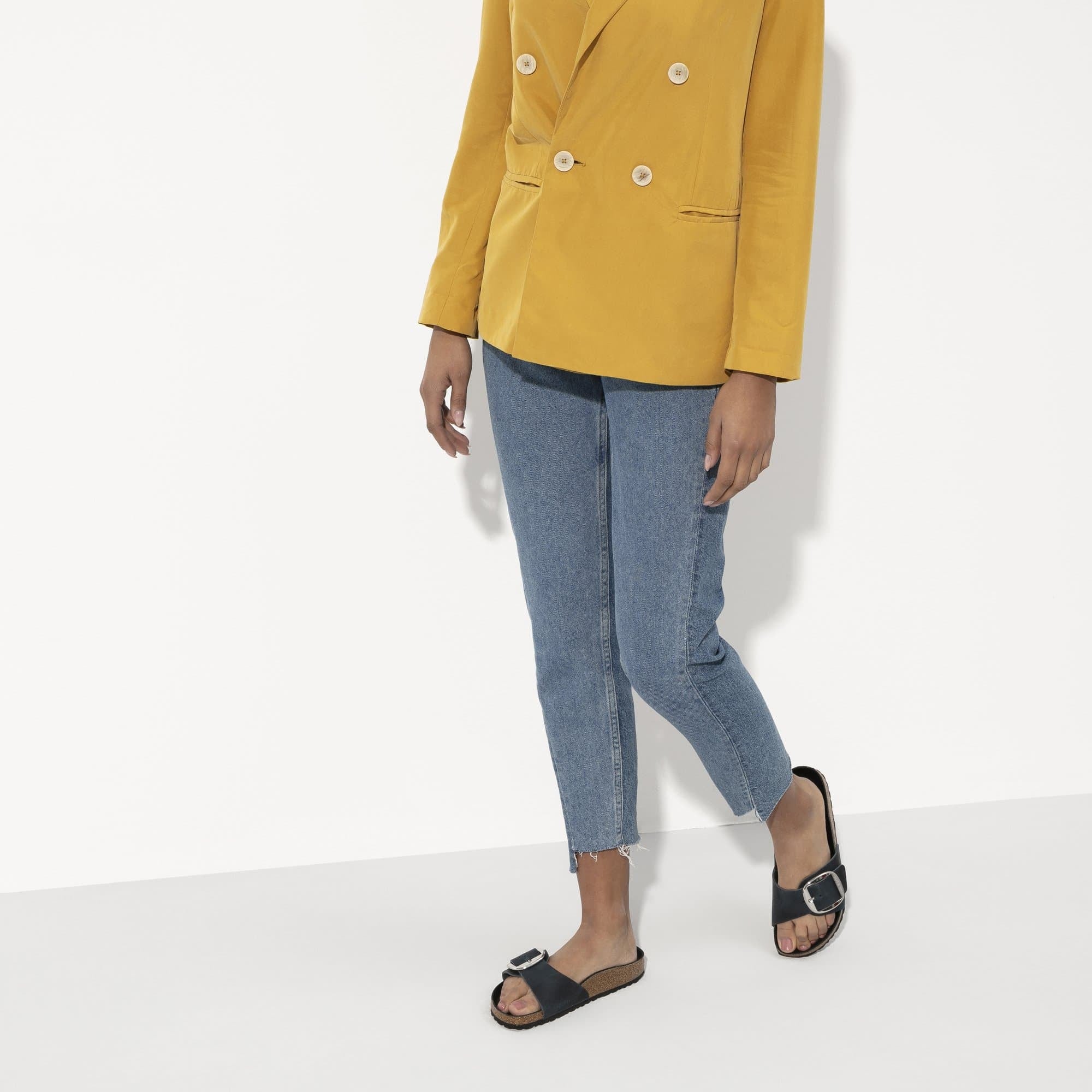 The BIRKENSTOCK Madrid Big Buckle Oiled Leather Blue sandal is a genuine classic that delights the fashion world with its simplistic design. The Big Buckle version features a large, elegant pin buckle, which serves as a brilliant, eye-catching detail on the otherwise understated design. The lining of the semi-exquisite footbed is covered in soft smooth leather that matches the colour of the shoe. The upper is made of soft high-quality natural leather.