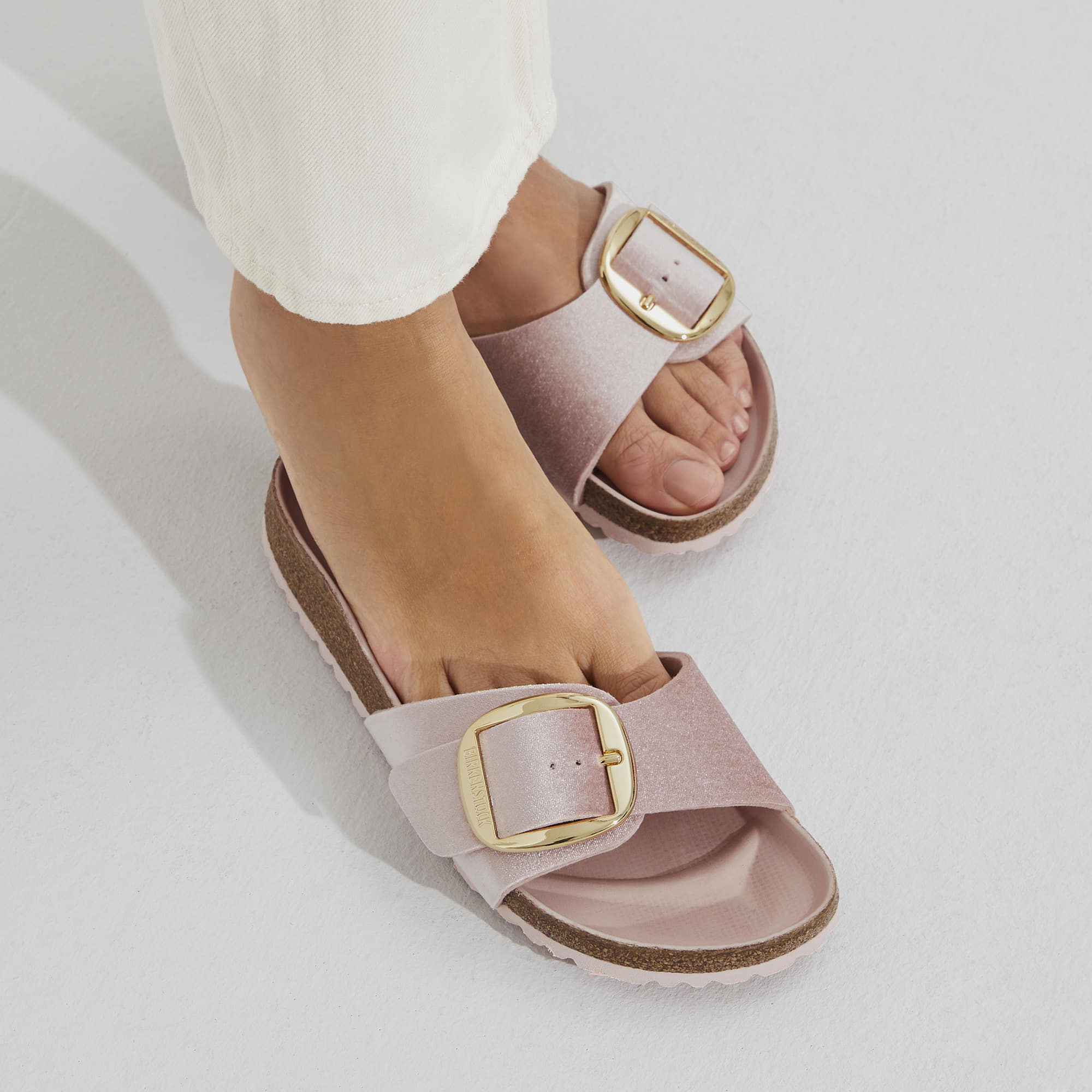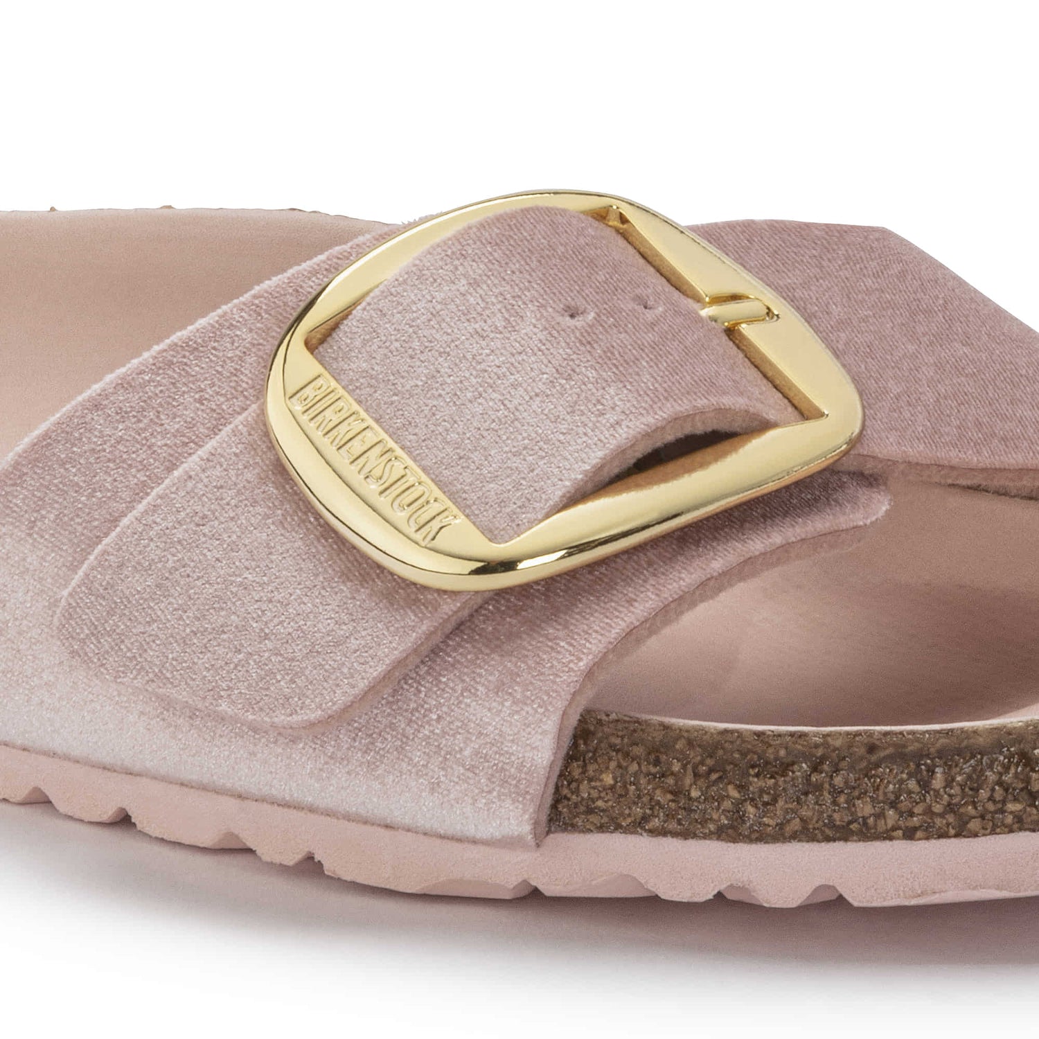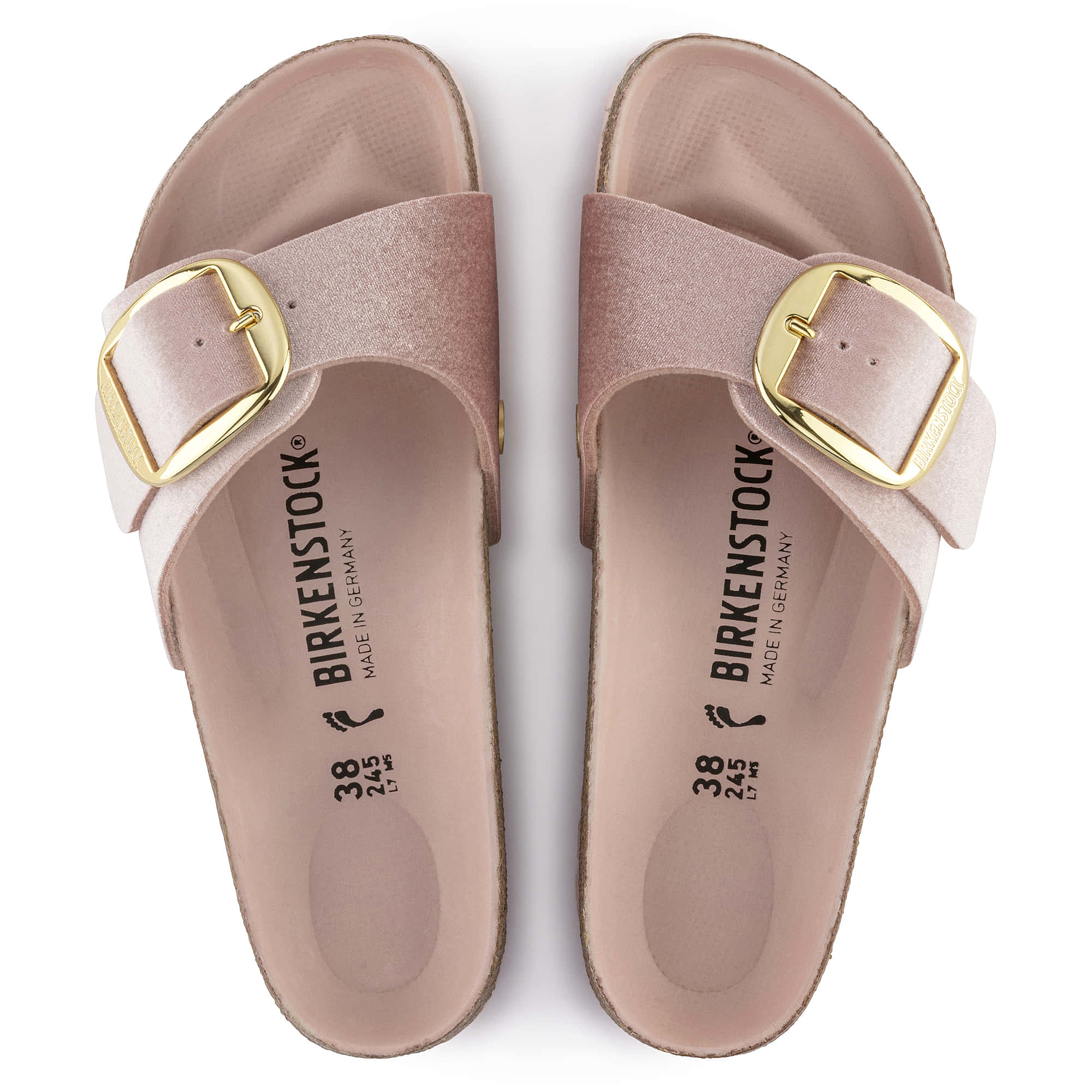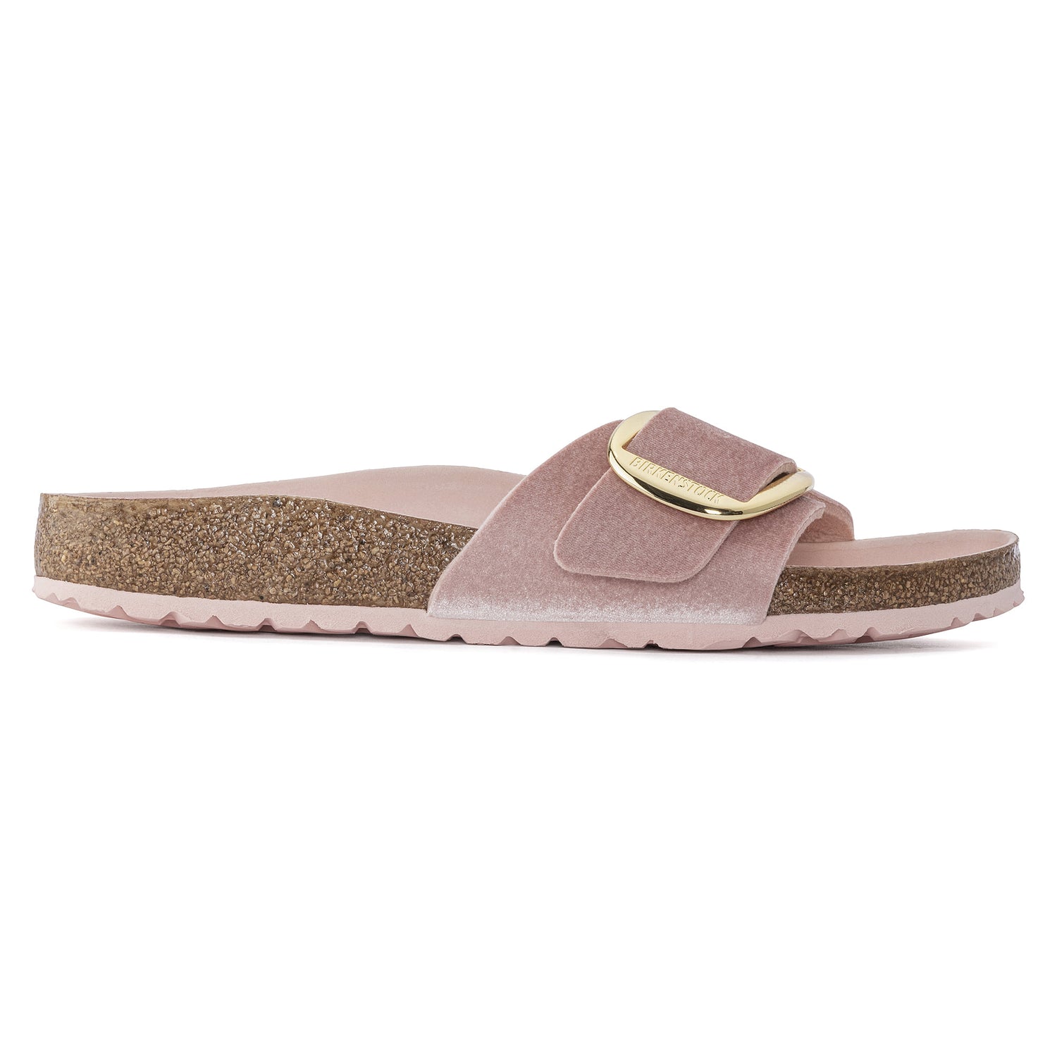 The BIRKENSTOCK Madrid is a genuine classic that delights the world of fashion with its minimalist design. This version brings two popular designs together. It is made of fine velvet and boasts a big, elegant pin buckle. The semi-exquisite footbed is lined with soft smooth leather and matches the shoe in color. The upper is made from smooth fabric.