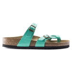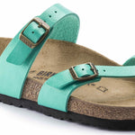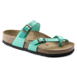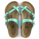 Jaunty and modern! The BIRKENSTOCK Mayari thong sandal stands out with its flowing look and brings together design and comfort. Here, we see the sandal with a silky sheen finish. The upper is made from the skin-friendly, hard-wearing synthetic material Birko-Flor®.