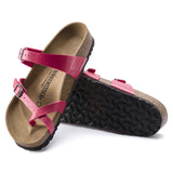 The Mayari from BIRKENSTOCK - an elegantly comfortable sandal with adjustable, crisscrossing straps that form a single loop around the toe. Classic support and adjustability, designed beautifully. This version features a subtle, frosted effect. The upper is made from the skin-friendly, hard-wearing synthetic material Birko-Flor®.