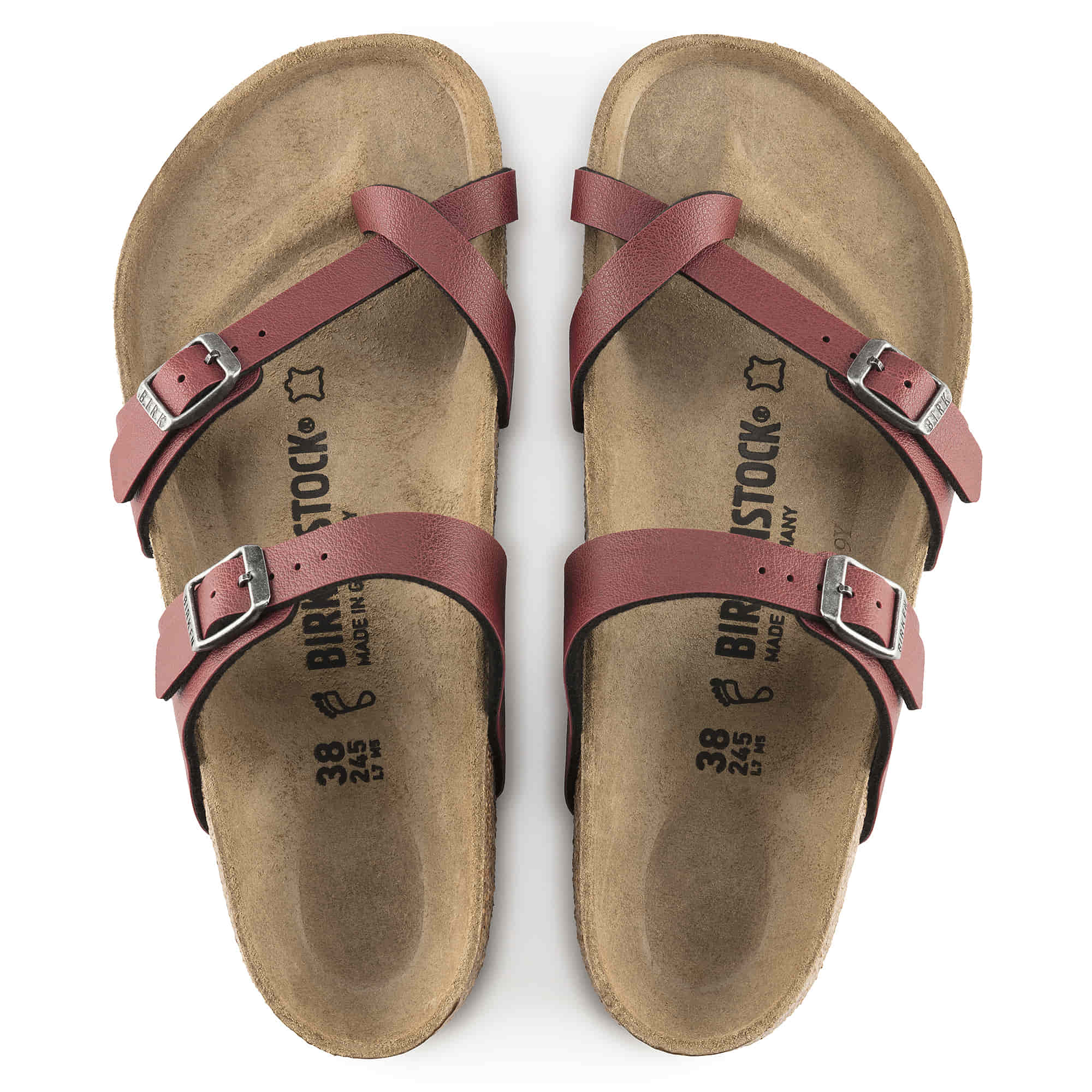 Sweeping, criss-crossed narrow straps: That is what gives the Mayari sandal its special look. For the Pull Up line, the Birko-Flor is processed in a special manner. The result is a vibrant, two-tone effect that is nearly impossible to tell apart from real leather. This is just one of the things that makes the sandals into everyday footwear that can be easily and casually mixed and matched with your outfits.