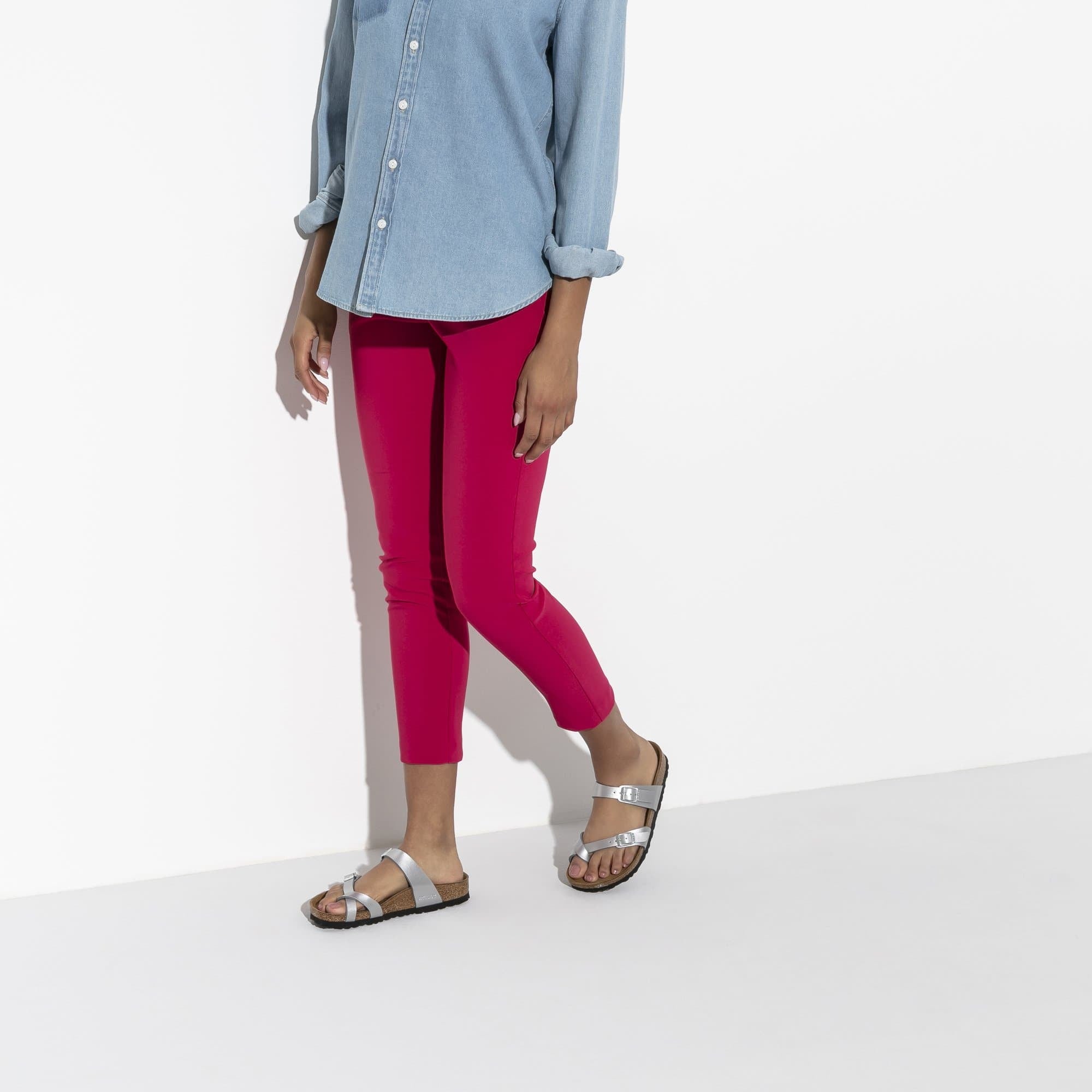 The BIRKENSTOCK Mayari thong sandal is a jaunty model with a toe loop. The impressive combination of design and wearability will see fashion-conscious men and women through the day with elegance and comfort. The upper is made from the skin-friendly, hard-wearing synthetic material Birko-Flor®.