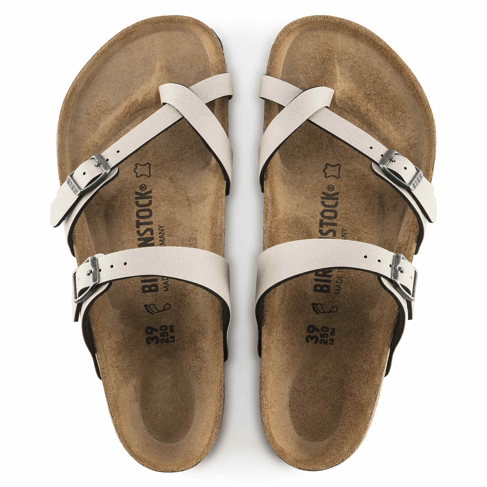 Sweeping, criss-crossed narrow straps: That is what gives the Mayari sandal its special look. For the Pull Up line, the Birko-Flor is processed in a special manner. The result is a vibrant, two-tone effect that is nearly impossible to tell apart from real leather. This is just one of the things that makes the sandals into everyday footwear that can be easily and casually mixed and matched with your outfits.