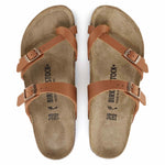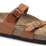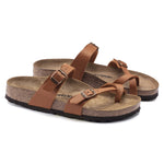 The BIRKENSTOCK Mayari thong sandal is a jaunty model with a toe loop. The impressive combination of design and wearability will see fashion-conscious men and women through the day with elegance and comfort. The upper is made from the skin-friendly, hard-wearing synthetic material Birko-Flor®.