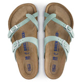 Jaunty and modern! The BIRKENSTOCK Mayari thong sandal stands out with its flowing look and brings together design and comfort. With its additional foam layer, the soft footbed offers extra comfort and pampers feet all day long. The upper is made from high-quality nubuck leather that boasts a natural, rustic appearance.