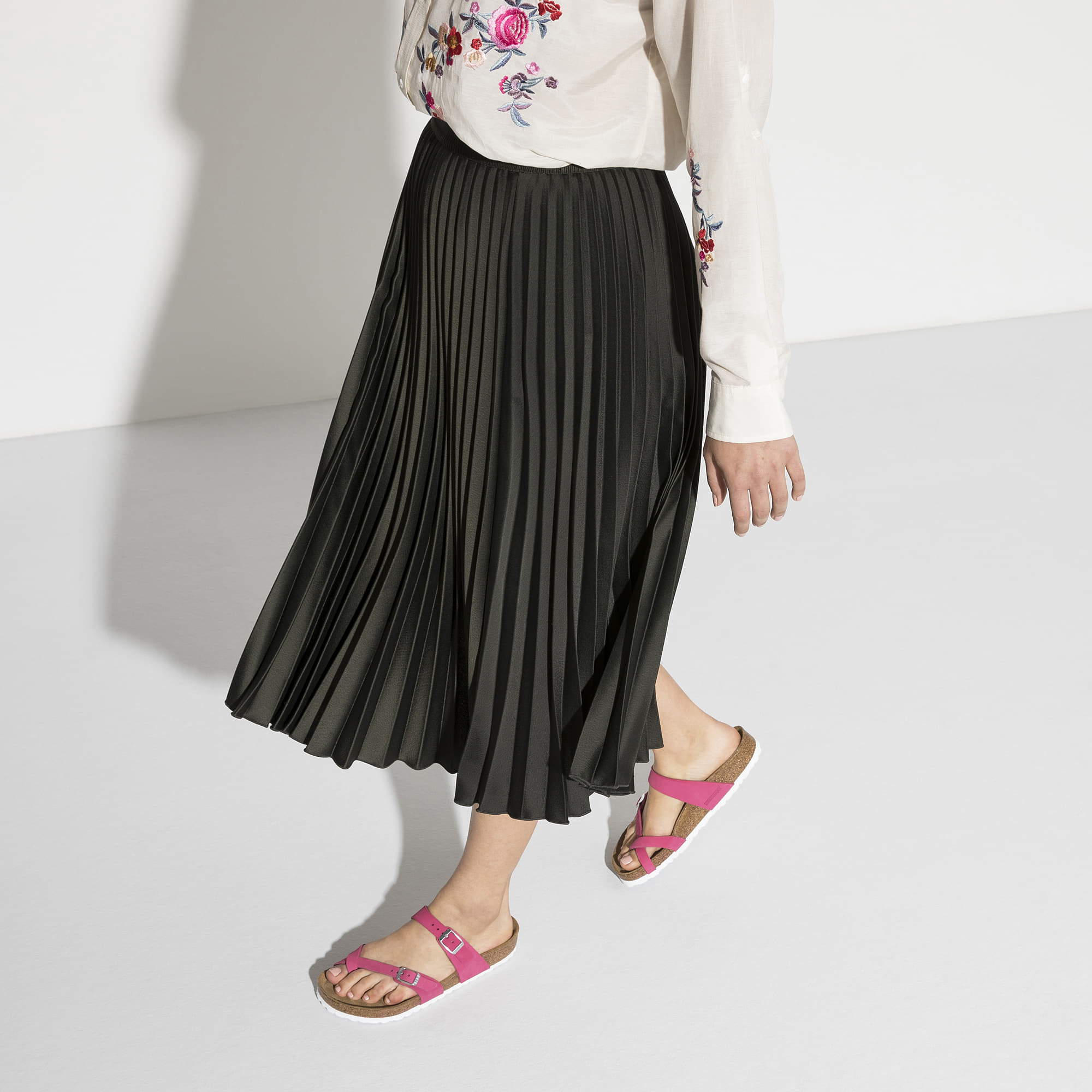 Jaunty and modern! The BIRKENSTOCK Mayari thong sandal stands out with its flowing look and brings together design and comfort. With its additional foam layer, the soft footbed offers extra comfort and pampers feet all day long. The upper is made from high-quality nubuck leather that boasts a natural, rustic appearance.