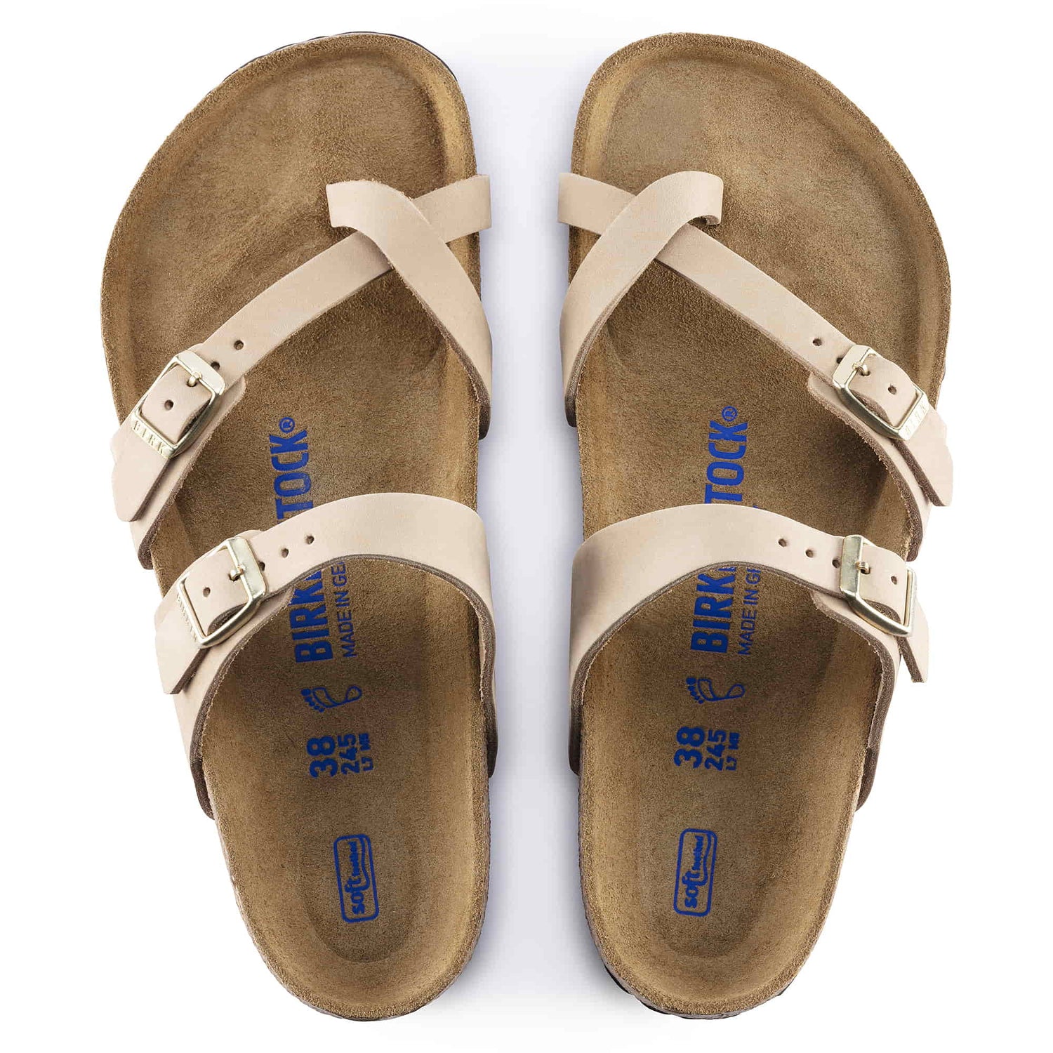 Jaunty and modern! The BIRKENSTOCK Mayari thong sandal stands out with its flowing look and brings together design and comfort. With its additional foam layer, the soft footbed offers extra comfort and pampers feet “ all day long. The upper is made from high-quality nubuck leather that boasts a natural, rustic appearance.