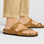 - Details: two straps, each with an individually adjustable metal pin buckle; toe loop; vegan
