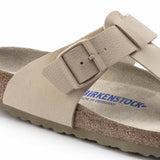 The BIRKENSTOCK Medina is a variation on the classic Gizeh. The thong sandal has two straps that merge with one another to give it a sturdy look and function. The upper is made from the skin-friendly, hard-wearing synthetic material Birko-Flor®. Here, the sophisticated interplay of material of gives the classic model a new look. It could almost be mistaken for real leather. The color-contrasting outsole and the color-coordinated buckles with a textile feel and a matte design round off the shoe's look of sophistication. With its additional foam layer, the soft footbed offers extra comfort and pampers feet all day long.