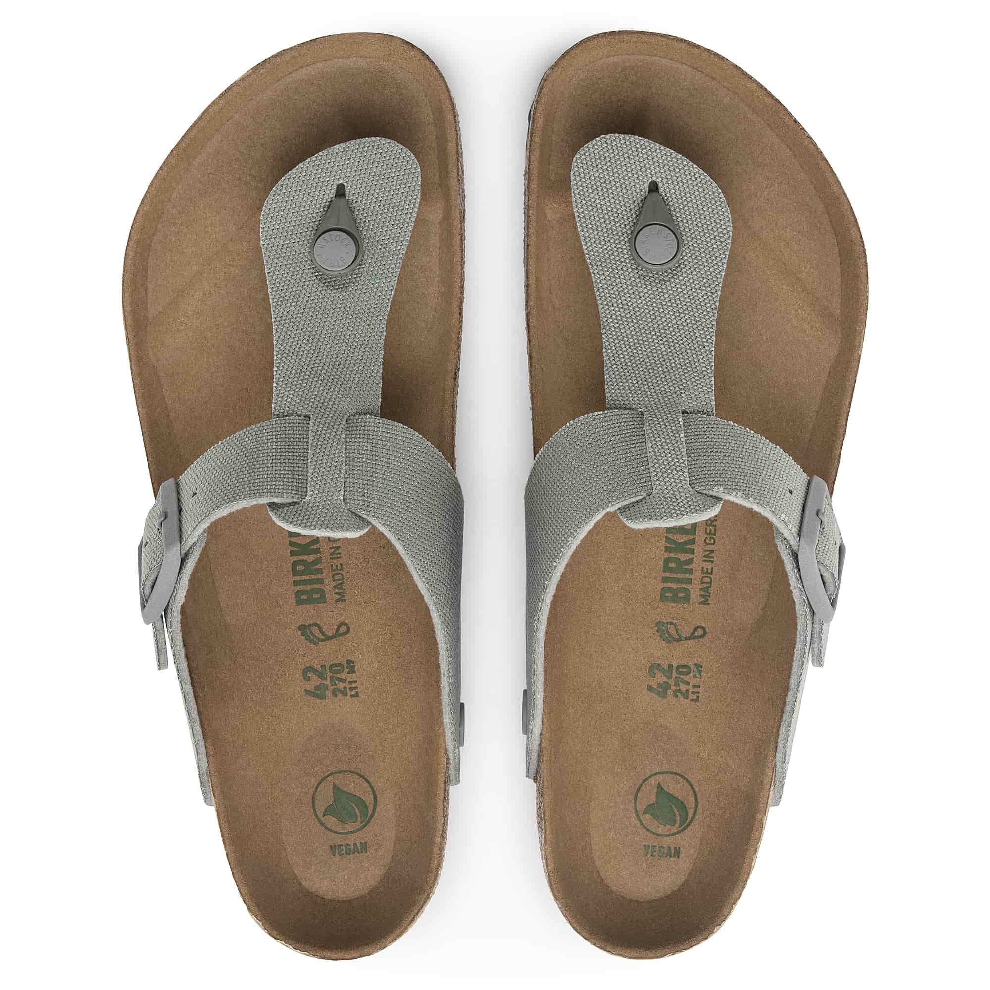 The BIRKENSTOCK Medina is a variation on the classic Gizeh. The thong sandal has two straps that merge with one another to give it a sturdy look and function. This popular sandal has been given an update in a new material, with a vegan version now available. It is entirely free of animal products, as verified by independent testing laboratories. The color-coordinated buckles with a textile feel and a matte design as well as the color-coordinated outsole are additional eye-catchers. The upper is made from a soft fabric.