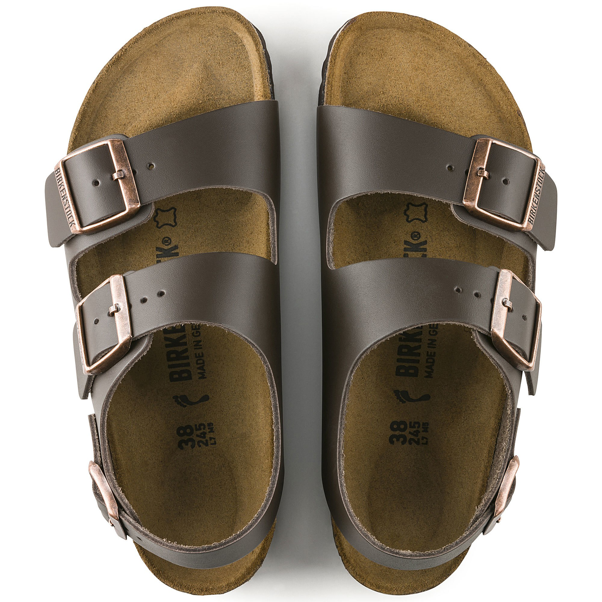 The BIRKENSTOCK Milano guarantees maximum grip and gives the feet stability in any movement scenario. This is thanks to the slightly more compact upper with two straps and the wide backstrap. The upper is made from high-quality, soft natural leather.