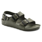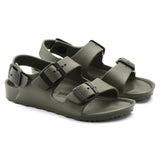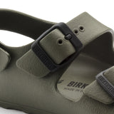Maximum grip, stability, and a perfect fit! The BIRKENSTOCK Milano offers all of this thanks to its compact design with a backstrap. Modelled on the cork original, this sandal is made from ultra-lightweight and highly flexible EVA. This high-quality, odour-neutral synthetic material which has been tested for harmful substances is shock-absorbent, waterproof, and skin-friendly. It is therefore perfect for wearing on the beach, in the garden, or in wellness and spa areas.