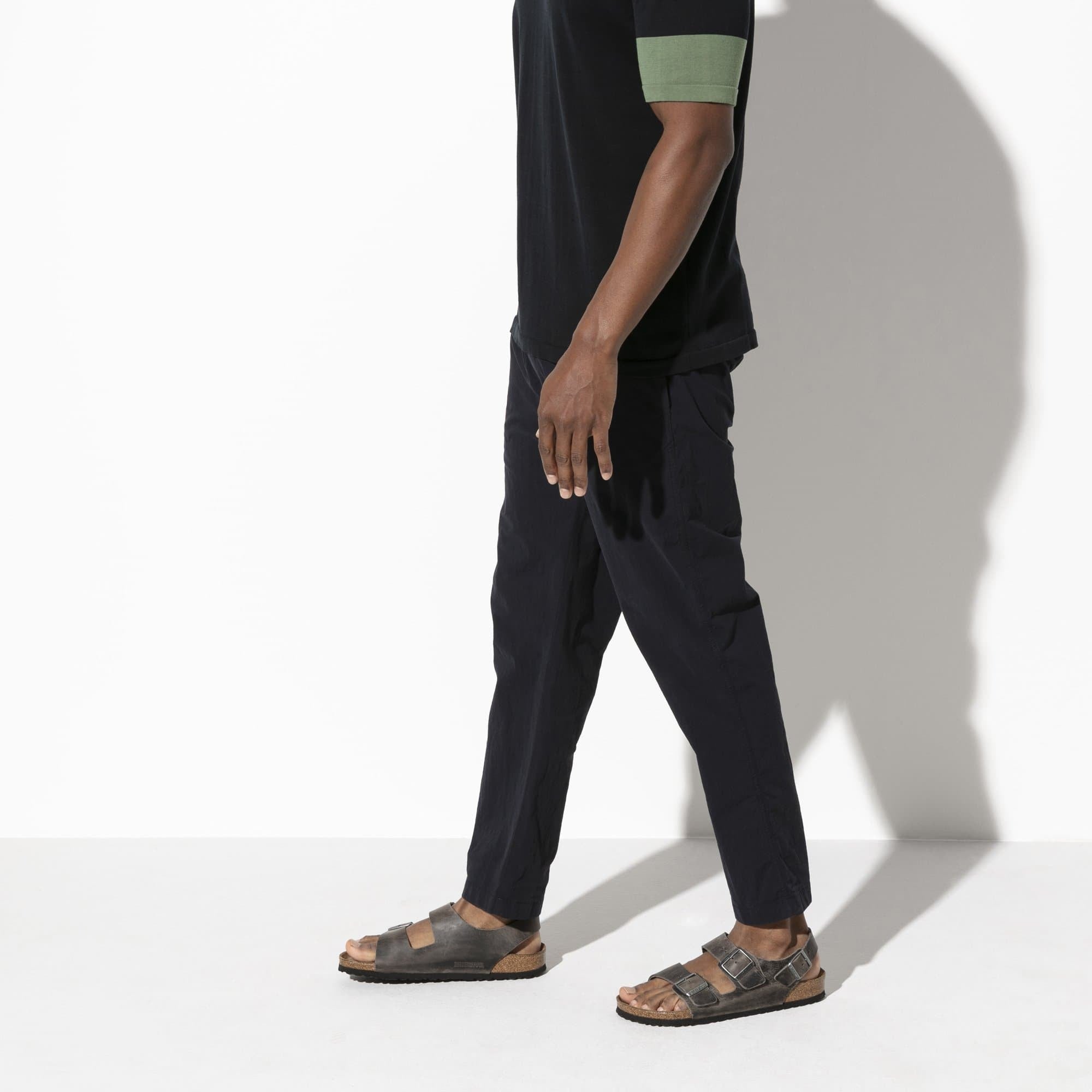 The BIRKENSTOCK Milano now comes in an elegant leather version. High-quality materials and excellent craftsmanship were our top priorities when making these extravagant sandals. The upper is made from cozy, glove-soft nubuck leather. span class="product-description-text">Comfort has always been paramount at BIRKENSTOCK. The Milano combines a perfect fit with outstanding design, with the unique closure sure to turn heads. The full-length upper can be adjusted to the shape of the wearer's feet using two ball-shaped "cartridge closures'® in a subtle shade of gold in combination with a contrasting leather loop featuring an embossed logo. Thanks to the shape and positioning of the wide straps, the balls of the feet are covered. The adjustable heel strap offers secure grip.span class="product-description-text">The anatomically shaped original BIRKENSTOCK cork-latex footbed is lined in high-quality napa leather, ensuring pleasant comfort that is gentle on the skin. In fact, the comfort level is boosted by the flexible EVA outsole with classic BIRKENSTOCK bone profile, which enables a rolling motion that is good for feet and body. Guided by the principle of "urban natural,'® the Milano sandal combines a natural modern style with outstanding comfort.