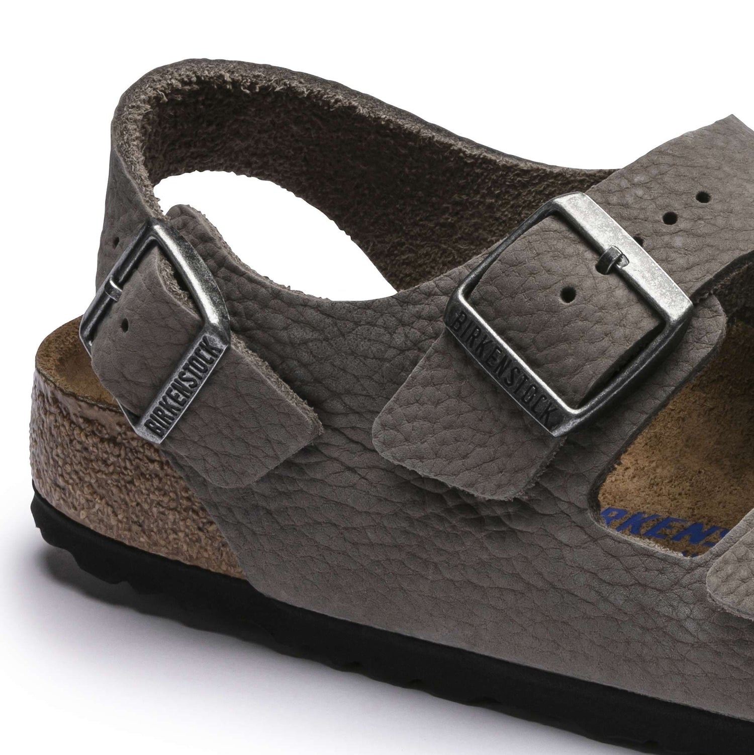 Maximum grip, stability, and a perfect fit! The BIRKENSTOCK Milano offers all of this thanks to its compact design with an ankle strap. The sandal boasts sophisticated material use which makes the classic model shine in new splendor. Here, the sandal comes in an elegant version which, thanks to the soft, tumbled nubuck leather, nevertheless has a natural and robust look. With its additional foam layer, the soft footbed offers extra comfort and pampers feet all day long.