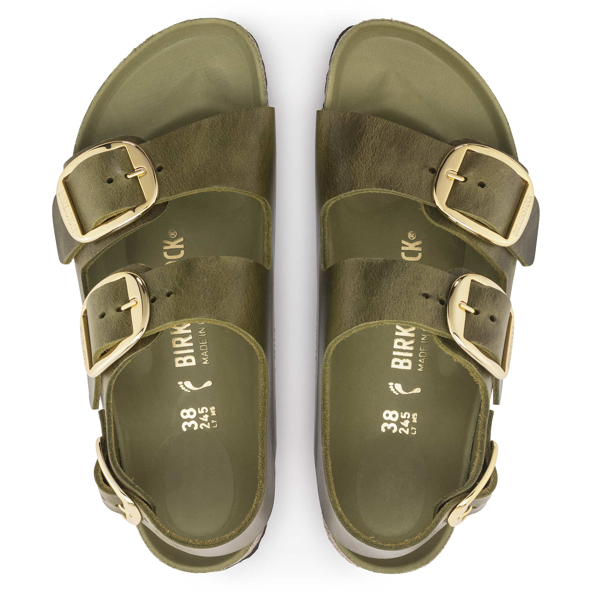 Maximum grip, stability, and a perfect fit! The BIRKENSTOCK Milano offers all of this thanks to its compact design with an ankle strap. The Big Buckle version features a large, elegant pin buckle a fantastic, striking eye-catcher on this otherwise understated sandal. The lining of the semi-exquisite footbed is covered with soft smooth leather and matches the shoe in color. The upper is made from extra thick, oiled nubuck leather with an open-selvage finish.