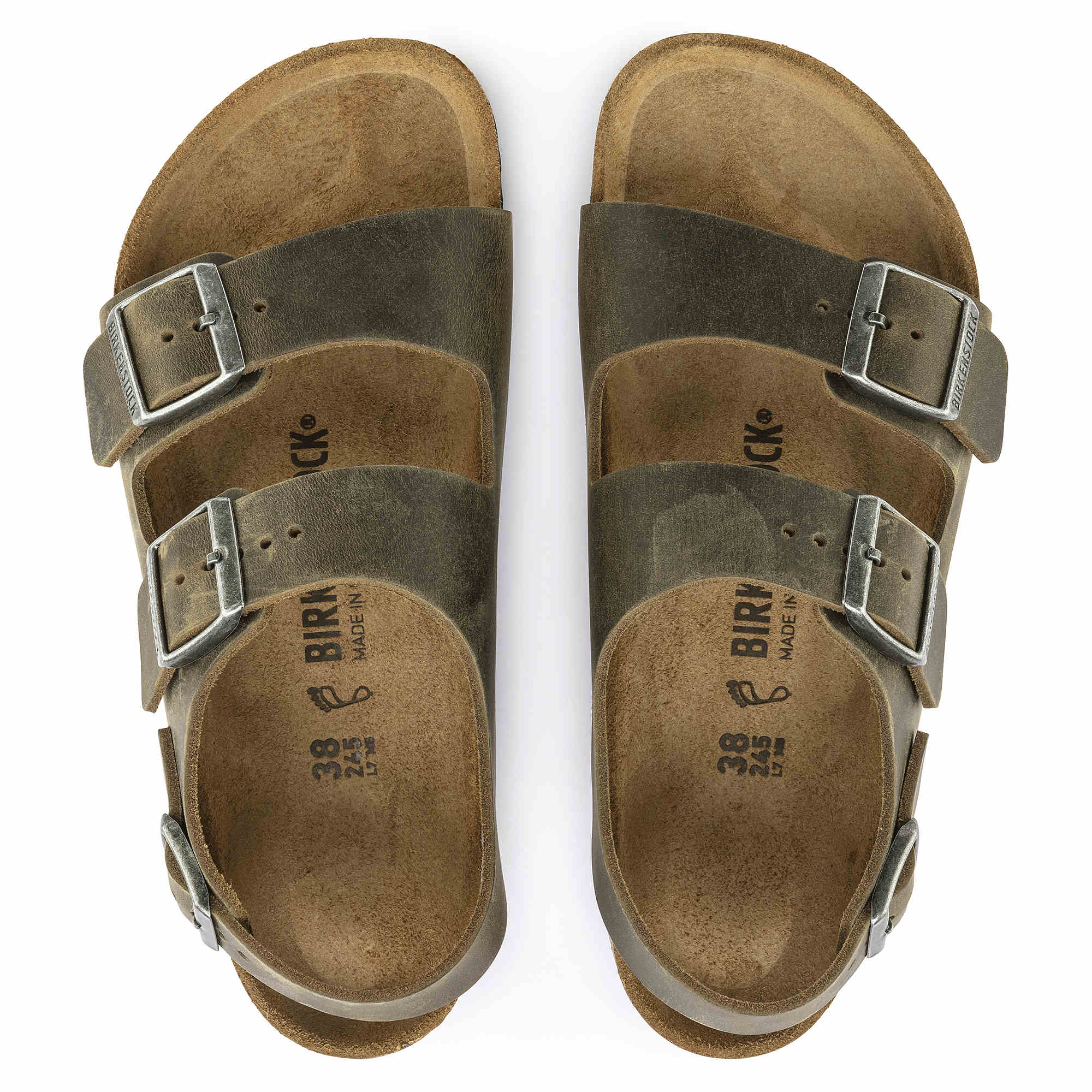 The BIRKENSTOCK Milano guarantees maximum grip and gives the feet stability during all activities. This is thanks to the slightly more compact upper with two straps and the wide ankle strap. The upper is made from extra thick, oiled nubuck leather with an open-selvage finish.