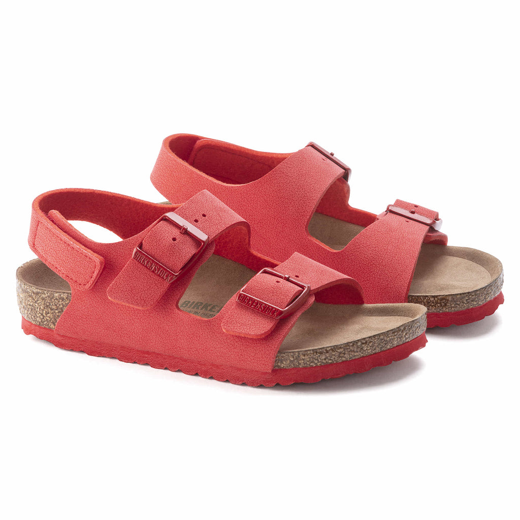 Maximum grip, stability, and a perfect fit! The BIRKENSTOCK Milano HL boasts perfect functionality. The hook-and-loop fasteners also make those early mornings less stressful with their easy handling. They also ensure that the sandals remain on the feet also during boisterous play! This popular sandal has been given an update in a new material, with a vegan version now available. It is entirely free of animal products, as verified by independent testing laboratories. The upper is made from the skin-friendly, hard-wearing synthetic material Birko-Flor® in a sophisticated nubuck look which boasts a texture and color that could almost be mistaken for real leather.