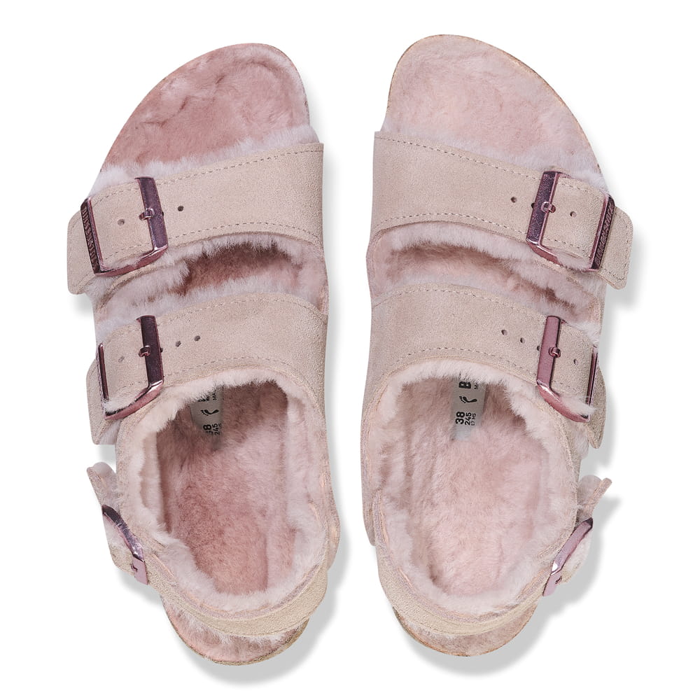 Birkesntock Pink/Light Rose Milano Suede Shearling Suede Leather/Shearling sandal