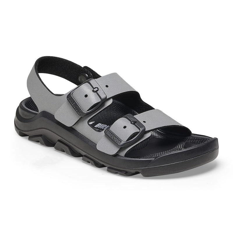 The perfect sandal for the playground, exploring forests, running across meadows and jumping into puddles! The BIRKENSTOCK Mogami is the perfect match for adventures of any kind thanks to the waterproof footbed with toe protection and the highly functional sole which is injected to the footbed and upper in two layers. This makes the sandal extremely flexible and durable in any terrain. This version reflects the light making it a special eye-catcher! The upper is made from the skin-friendly, hard-wearing synthetic material Birko-Flor®.