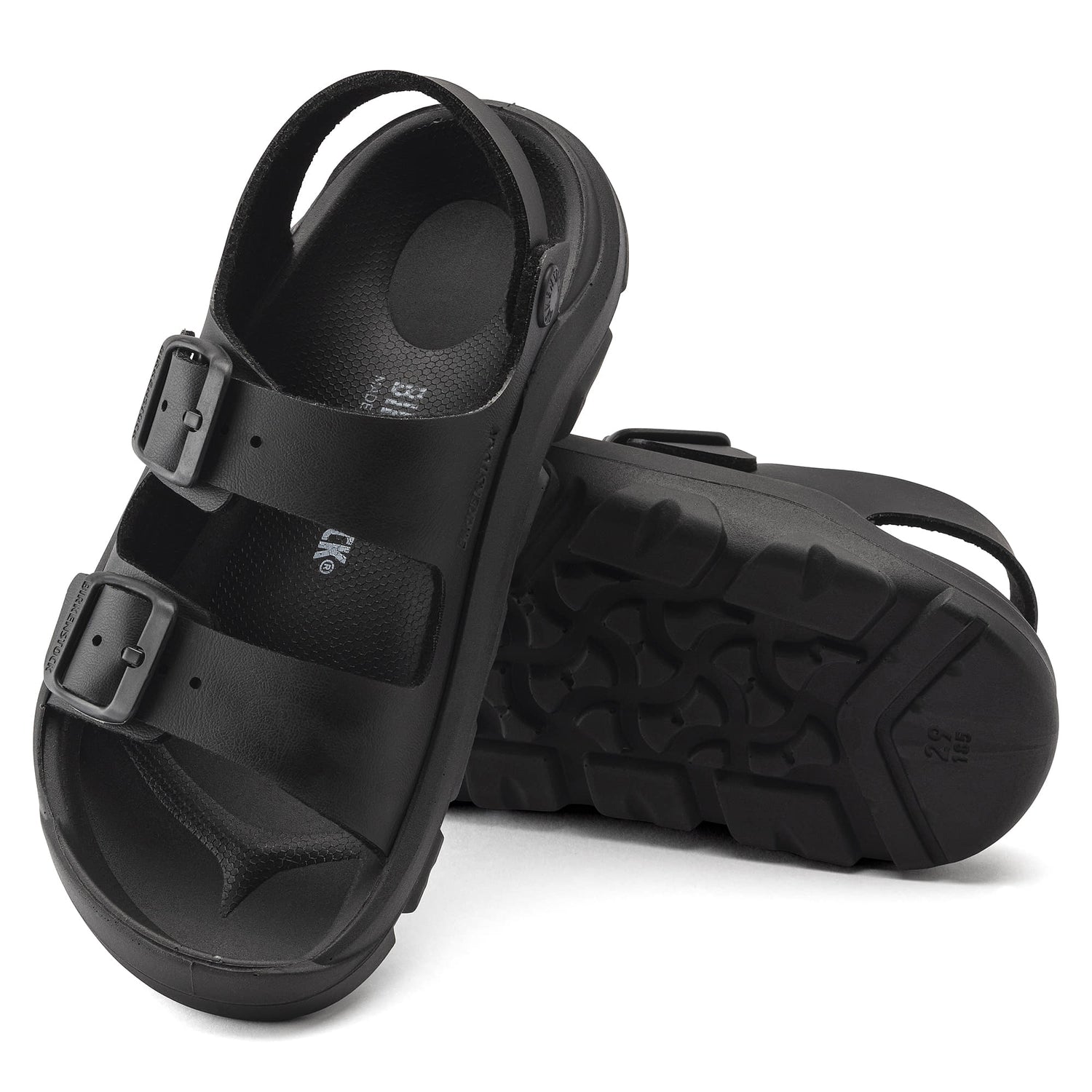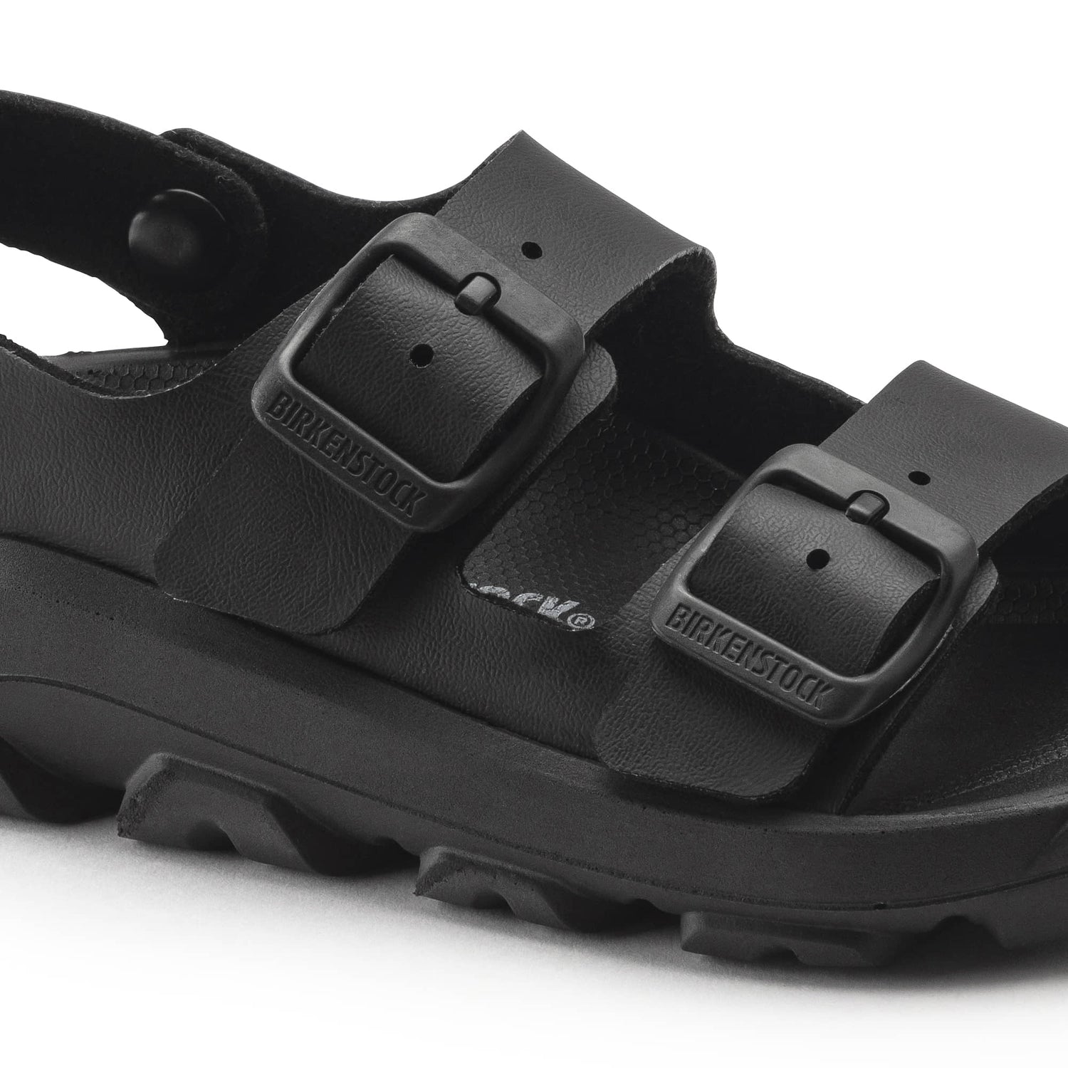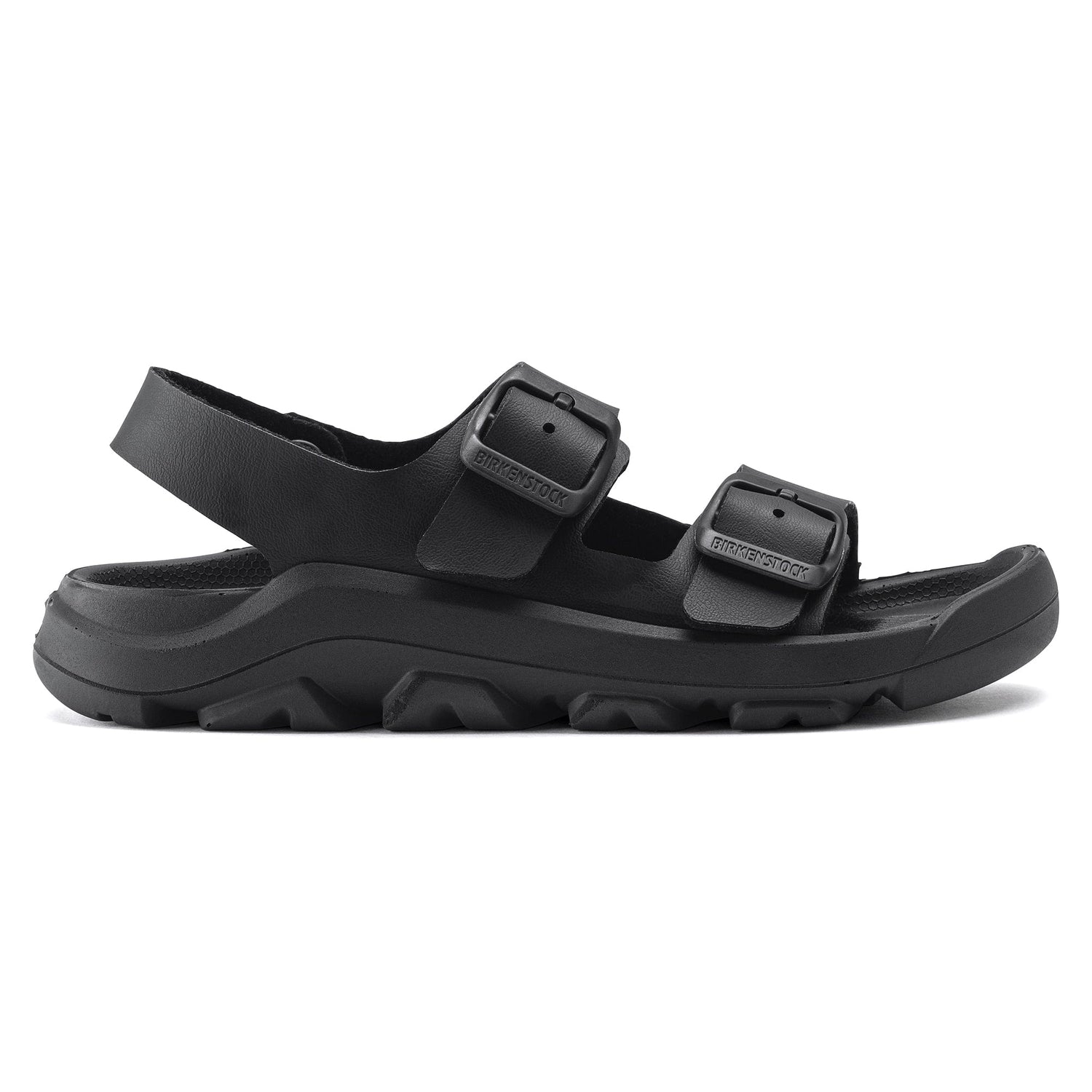 The perfect sandal for the playground, exploring forests, running across meadows and jumping into puddles! The BIRKENSTOCK Mogami is the perfect match for adventures of any kind thanks to the waterproof footbed with toe protection and the highly functional sole which is injected to the footbed and upper in two layers. This makes the sandal extremely flexible, slip-resistant and durable in any terrain. This version boasts vibrant colors. The upper is made from the skin-friendly, hard-wearing synthetic material Birko-Flor®.