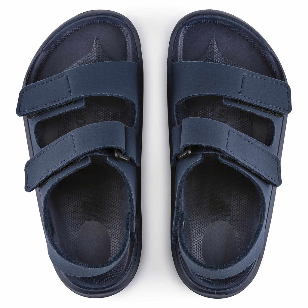 The perfect sandal for the playground, exploring forests, running across meadows and jumping into puddles! With the BIRKENSTOCK Mogami, kids are more than ready for small and big adventures thanks to its waterproof footbed and the highly functional sole. The hook-and-loop fasteners also make family excursions less stressful with their easy handling. They also ensure that the sandals remain on the feet “ also during boisterous play! The upper is made of a skin-friendly synthetic material comprising hard-wearing elastane lined with felt. It absorbs hardly any moisture and dries quickly.