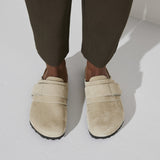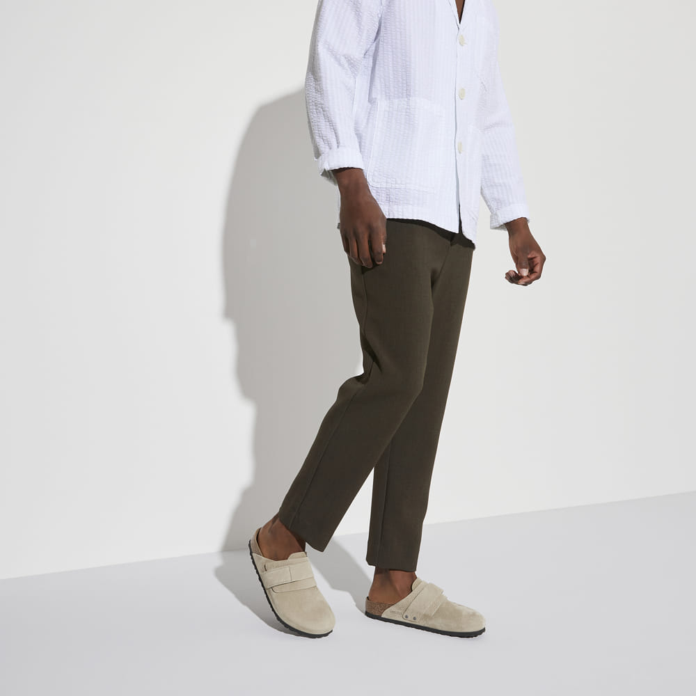 The BIRKENSTOCK Nagoya takes its inspiration from the classic Boston model and stands out with its compact design and individually adjustable buckle. This offers optimum grip and is complemented by two decorative rivets. This version with its grained upper boasts a striking yet natural design. The upper is made from high-quality, soft nubuck leather that boasts a rustic appearance.