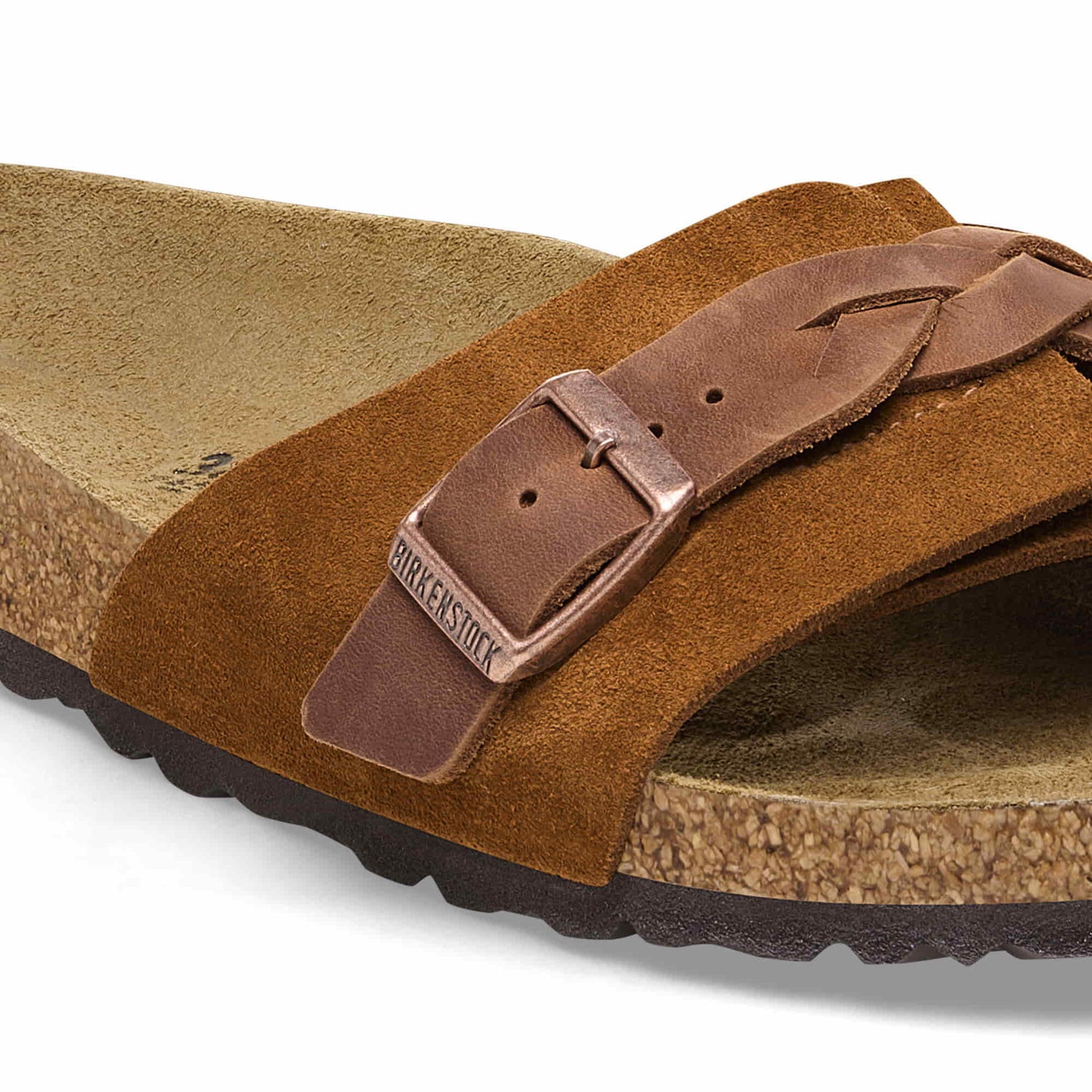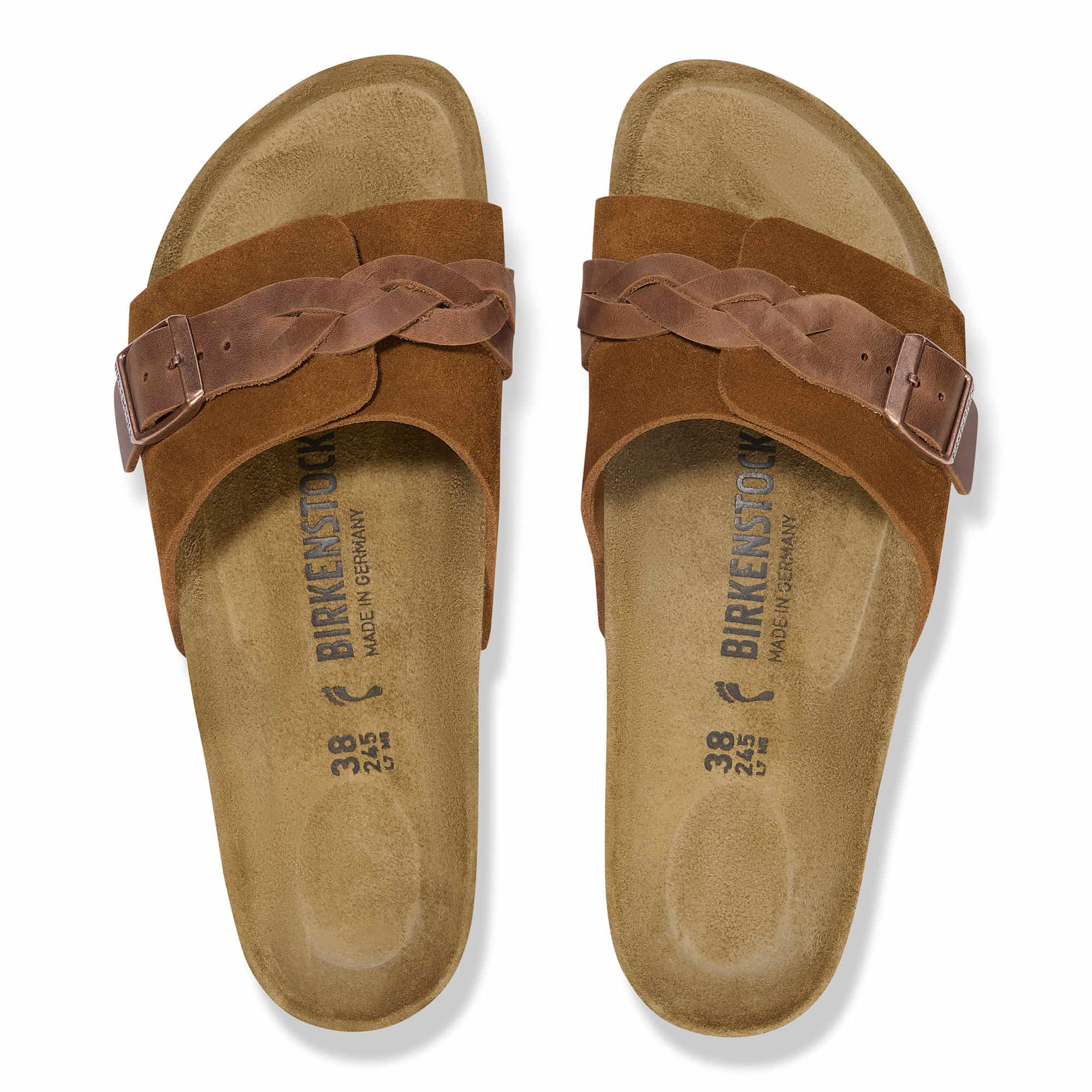 The casual BIRKENSTOCK Pula takes its inspiration from the classic Kyoto model and stands out with its slim and feminine design and individually adjustable fastener. Here, the model comes with a special detail: the straps have a braided pattern, making them the perfect match for fashionable boho styles. The upper is made from especially soft suede which hugs the foot like a second skin.