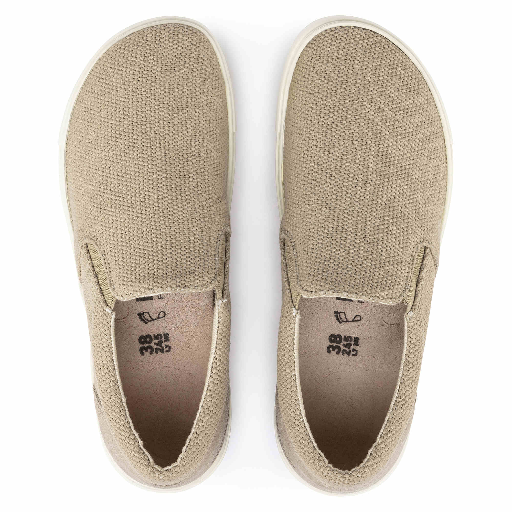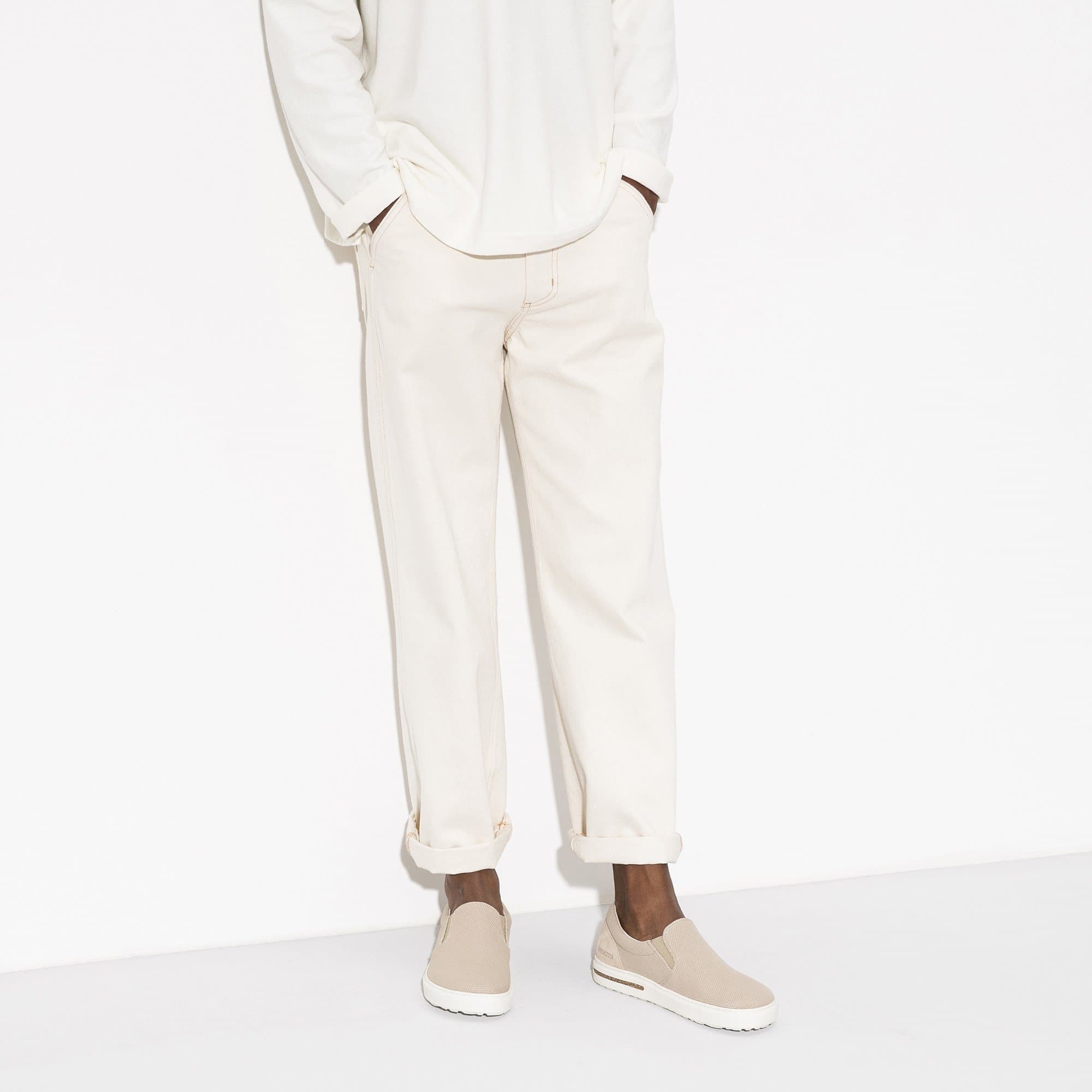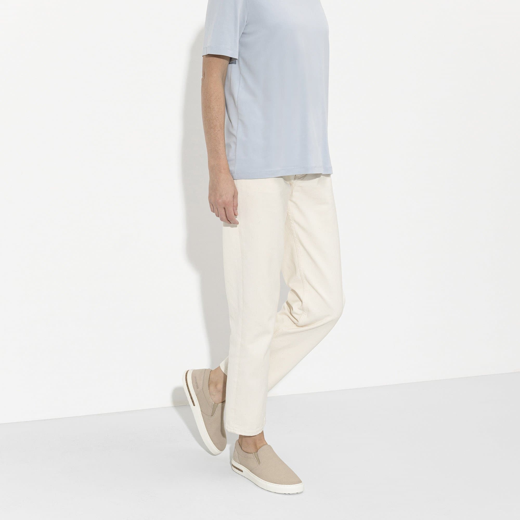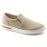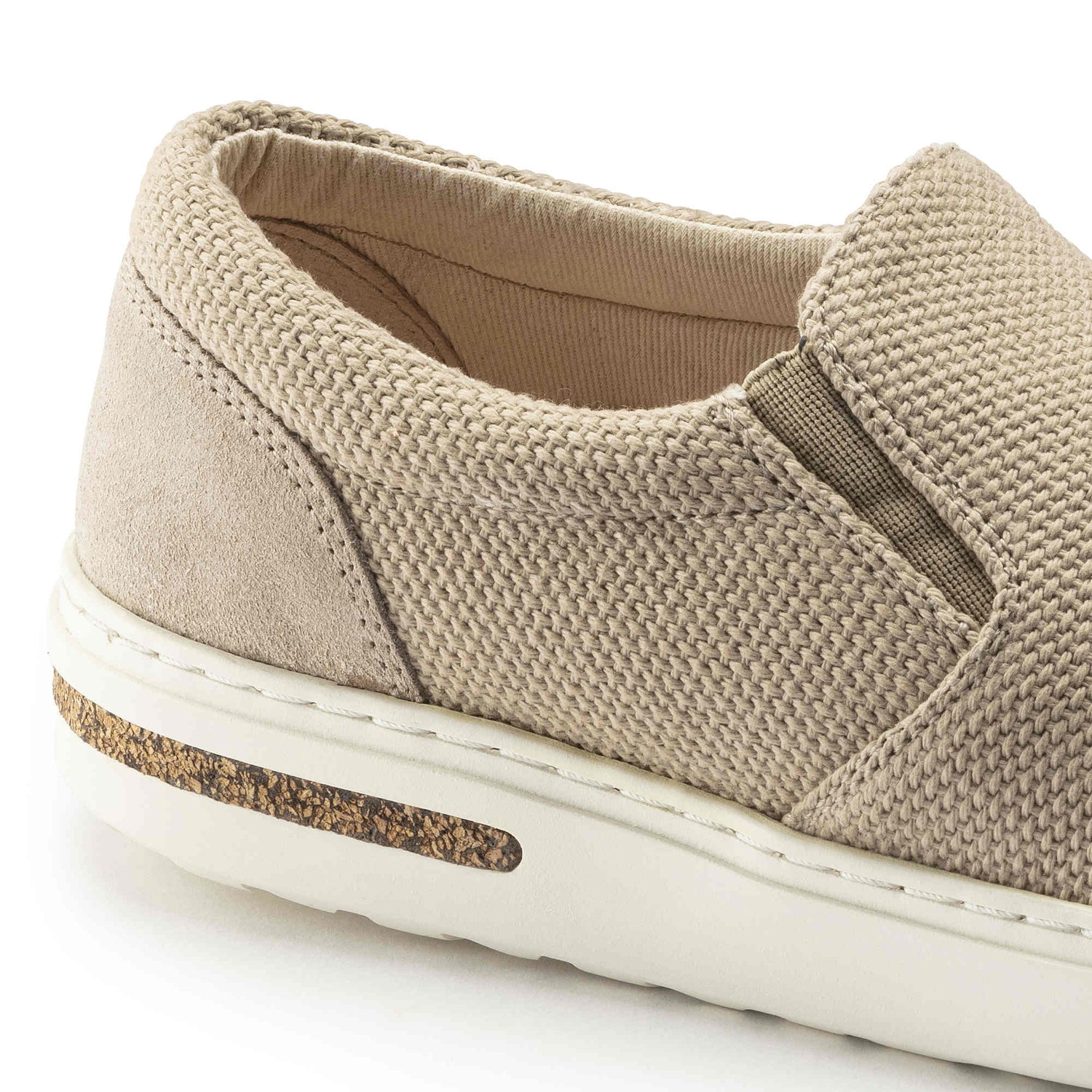 Just slip in! The BIRKENSTOCK Oswego is a handy slip-on shoe that will delight both men and women alike. The casual low shoe features elastic inserts which make it easy to put it on and take it off in no time. The flexible rubber sole with a shock-absorbing cork-PU intermediate layer and the padding at the edge of the shaft result in even more comfort. The upper is made from smooth canvas in combination with soft suede.