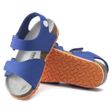 The BIRKENSTOCK Palu guarantees maximum grip and gives the feet stability even during boisterous activities. This is thanks to the two straps with a hook-and-loop fastener. They also make those early mornings less stressful with their easy handling. Perfect for kids impatient feet! The upper is made from the skin-friendly, hard-wearing synthetic material Birko-Flor®. Thanks to the special craftsmanship, it could almost be mistaken for real leather. Here, the sophisticated interplay of contrasts gives the classic model a new look.