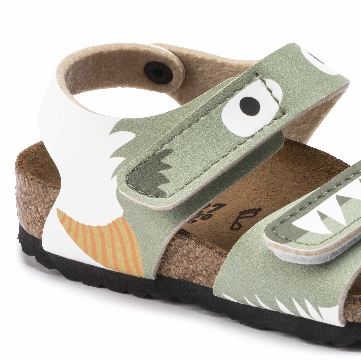Maximum grip, perfect fit and easy-as-pie putting on. The BIRKENSTOCK Palu offers all of this thanks to its compact design with an ankle strap and hook-and-loop fasteners. This version has a cute monster print which almost seems to be grinning at us with its large friendly eyes and teeth. The upper is made from the skin-friendly, hard-wearing synthetic material Birko-Flor.