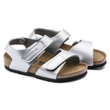 The BIRKENSTOCK Palu guarantees maximum grip and gives the feet stability even during boisterous activities. This is thanks to the two straps with a hook-and-loop fastener. They also make those early mornings less stressful with their easy handling. Perfect for kids impatient feet! The upper is made from the skin-friendly, hard-wearing synthetic material Birko-Flor®.
