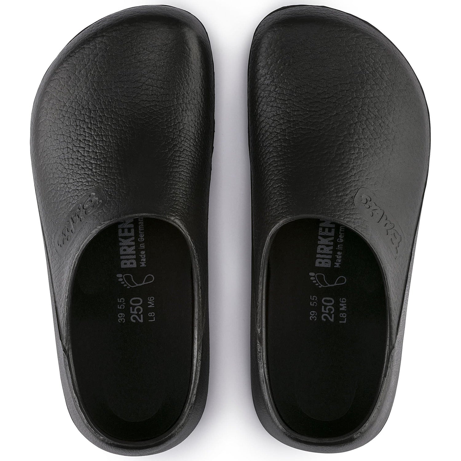 BIRKENSTOCK developed the Profi Birki to offer perfect grip and sure-footedness in almost any work environment. With its raised heel section and extended front, it encloses the entire foot and promotes a natural rolling motion with every step you take. The nonslip PU sole proves itself to be the ideal solution on smooth floor surfaces in particular. The Profi Birki is a top choice among long-term employees in hospitals, the food industry, and kitchens. Its outstanding hygiene properties likewise attest to this: the oil- and grease-resistant clog is washable to 80° Celsius, while the removable PU footbed can be washed to 60° Celsius and can also be disinfected. All Profi Birki models are certified in accordance with EN ISO 20347:2012 OB E (SRB category).