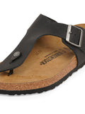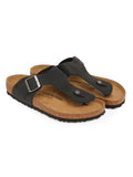 The BIRKENSTOCK Ramses is the mens version of the popular Gizeh thong sandal. The slightly wider strap lends this sandal a strikingly masculine appearance. The upper is made from extra thick, oiled nubuck leather with an open-selvage finish.