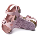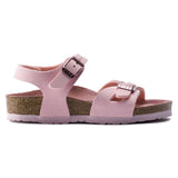 The BIRKENSTOCK Rio is a sporty, elegant sandal with a heel strap that offers reliable and comfortable grip also during rough-and-tumble play. The color-coordinated outsole, the footbed and the buckles are a real eye-catcher. The upper is made from the skin-friendly, hard-wearing synthetic material Birko-Flor® in a sophisticated nubuck look which boasts a texture and color that could almost be mistaken for real leather.