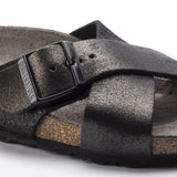 The BIRKENSTOCK Siena impresses with its elegant look. The crossed-over straps give these sandals their special, unique look. This model has a garment-washed, metallic look with a subtle vintage finish. This effect can vary from shoe to shoe and becomes more apparent the more the shoe is worn. The colour-coordinated footbed rounds off the sophisticated look of this shoe. The upper is made of soft suede.