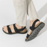 The BIRKENSTOCK Sonora is the perfect sandal for all those who are on their feet all day and who expect a high level of comfort from their footwear. The sandal boasts a distinctive sole, which is reinforced in the heel area and combined with understated straps. The polyurethane sole is affixed to the footbed in two layers and therefore offers maximum flexibility, grip and durability. The color-coordinated buckles with a textile feel and a matte design are additional eye-catchers. The upper is made from the skin-friendly, hard-wearing synthetic material Birko-Flor® in a sophisticated nubuck look which boasts a texture and color that could almost be mistaken for real leather.