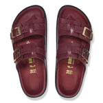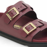 With the St. Barths, BIRKENSTOCK presents a particularly sophisticated and feminine version of the classic Arizona. The two-part outsole facilitates the rolling of the foot and ensures an elegant gait. The premium rectangular zamak buckles with a convex shape perfectly fit the foot and embody a contemporary design. The exquisite footbed is fully lined with soft leather, making it exceptionally comfortable. The upper is made from high-quality, soft natural leather.