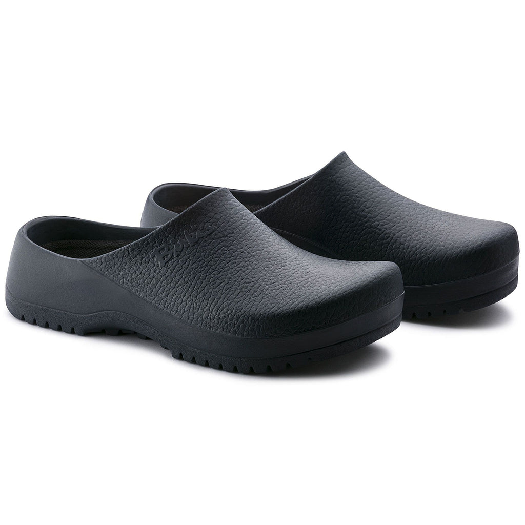 The wide array of colors that the Super Birki is available in makes it highly versatile for use in all sorts of occupational and private settings. This compact shoe made from water-resistant and dirt-repellent polyurethane is also oil- and grease-resistant. This extremely resilient material is washable at up to 60° Celsius and can be efficiently disinfected. Its resilience and its hygiene properties make it ideal for kitchens, medical environments, and the food industry while it can equally serve as a practical garden clog. The anatomically shaped cork-latex footbed is lined with a moisture-wicking fabric. It can be removed for easy cleaning and is washable at up to 30° Celsius. All Super Birki models are certified in accordance with EN ISO 20347:2012 OB E (SRC category).
