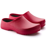 The wide array of colors that the Super Birki is available in makes it highly versatile for use in all sorts of occupational and private settings. This compact shoe made from water-resistant and dirt-repellent polyurethane is also oil- and grease-resistant. This extremely resilient material is washable at up to 60° Celsius and can be efficiently disinfected. Its resilience and its hygiene properties make it ideal for kitchens, medical environments, and the food industry while it can equally serve as a practical garden clog. The anatomically shaped cork-latex footbed is lined with a moisture-wicking fabric. It can be removed for easy cleaning and is washable at up to 30° Celsius. All Super Birki models are certified in accordance with EN ISO 20347:2012 OB E (SRC category).