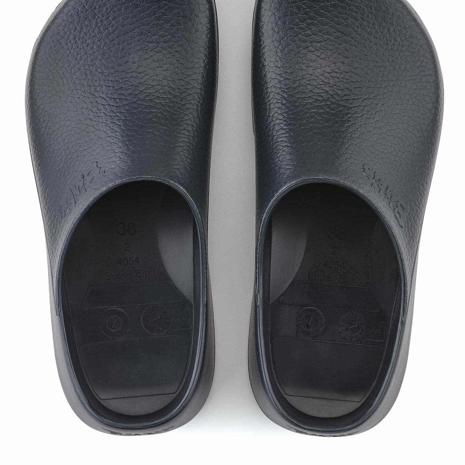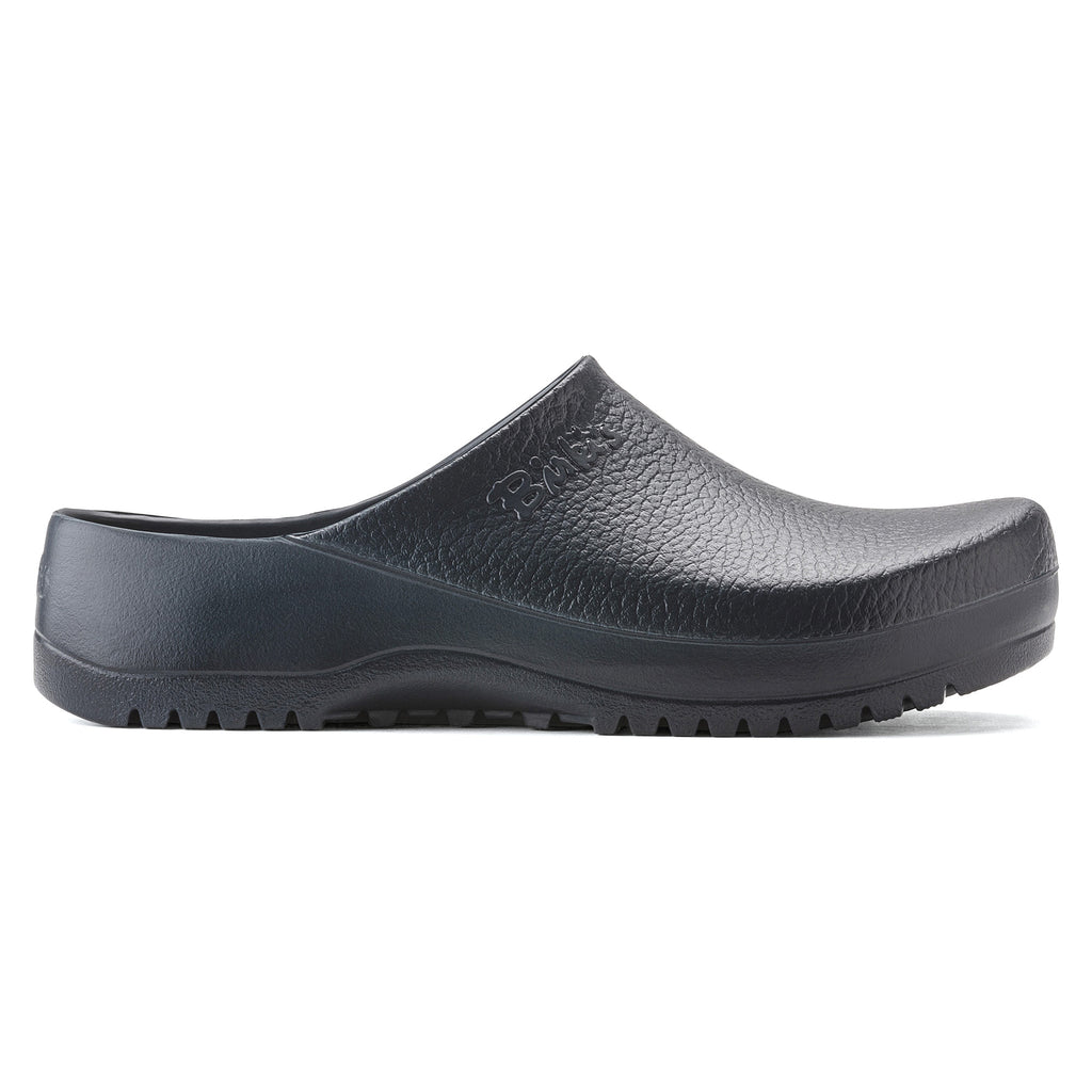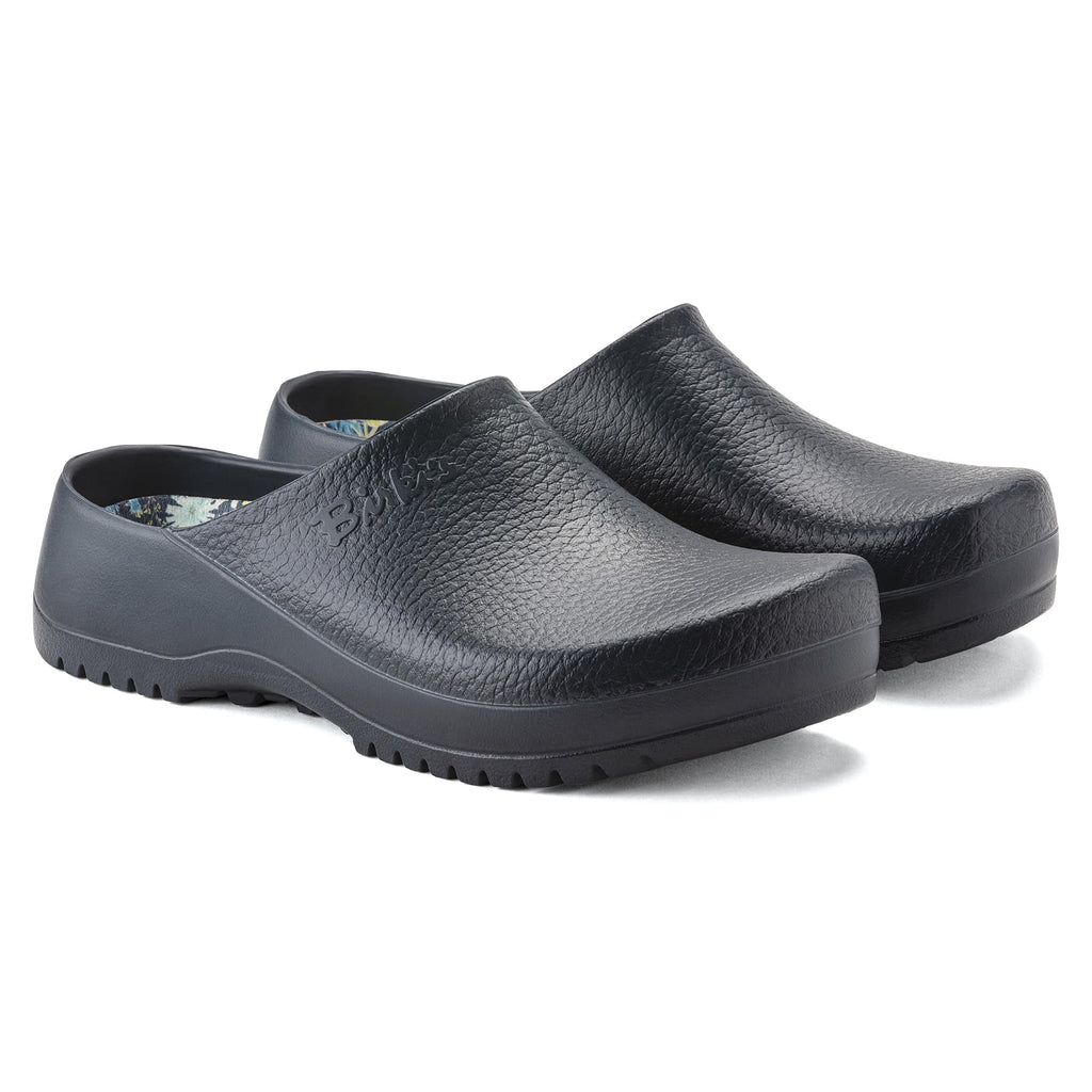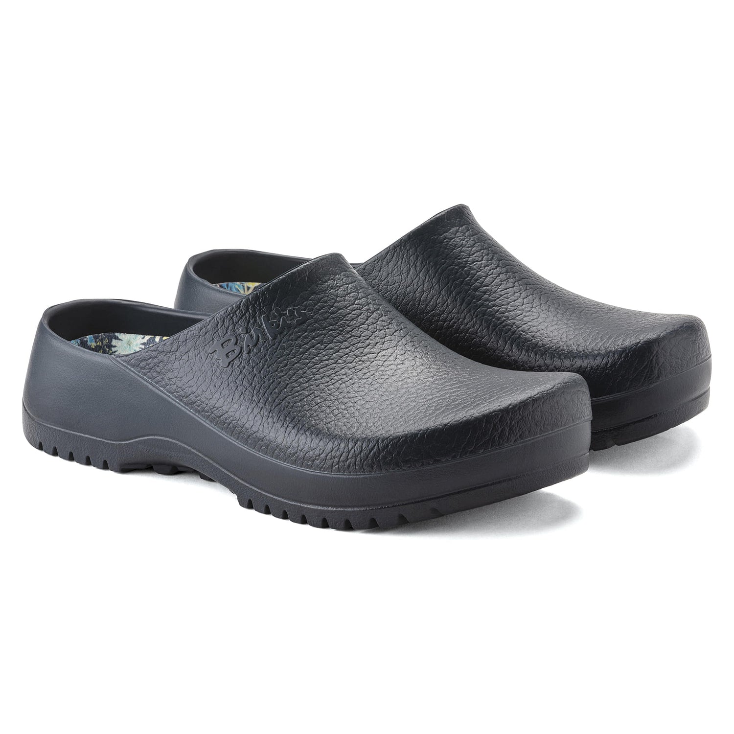 The Super Birki is suitable for leisure, garden, and professional wear. With its flat heel section, this popular and seamless clog provides the feet with all-around protection and grip. The footbed is replaceable. This version comes with colorful prints on the footbed. This sandal has been given an update in a new material, with a vegan version now available. It is entirely free of animal products, as verified by independent testing laboratories. The upper is made of polyurethane (PU). It is flexible, water- and dirt-repellent and makes the shoe particularly easy to care for.