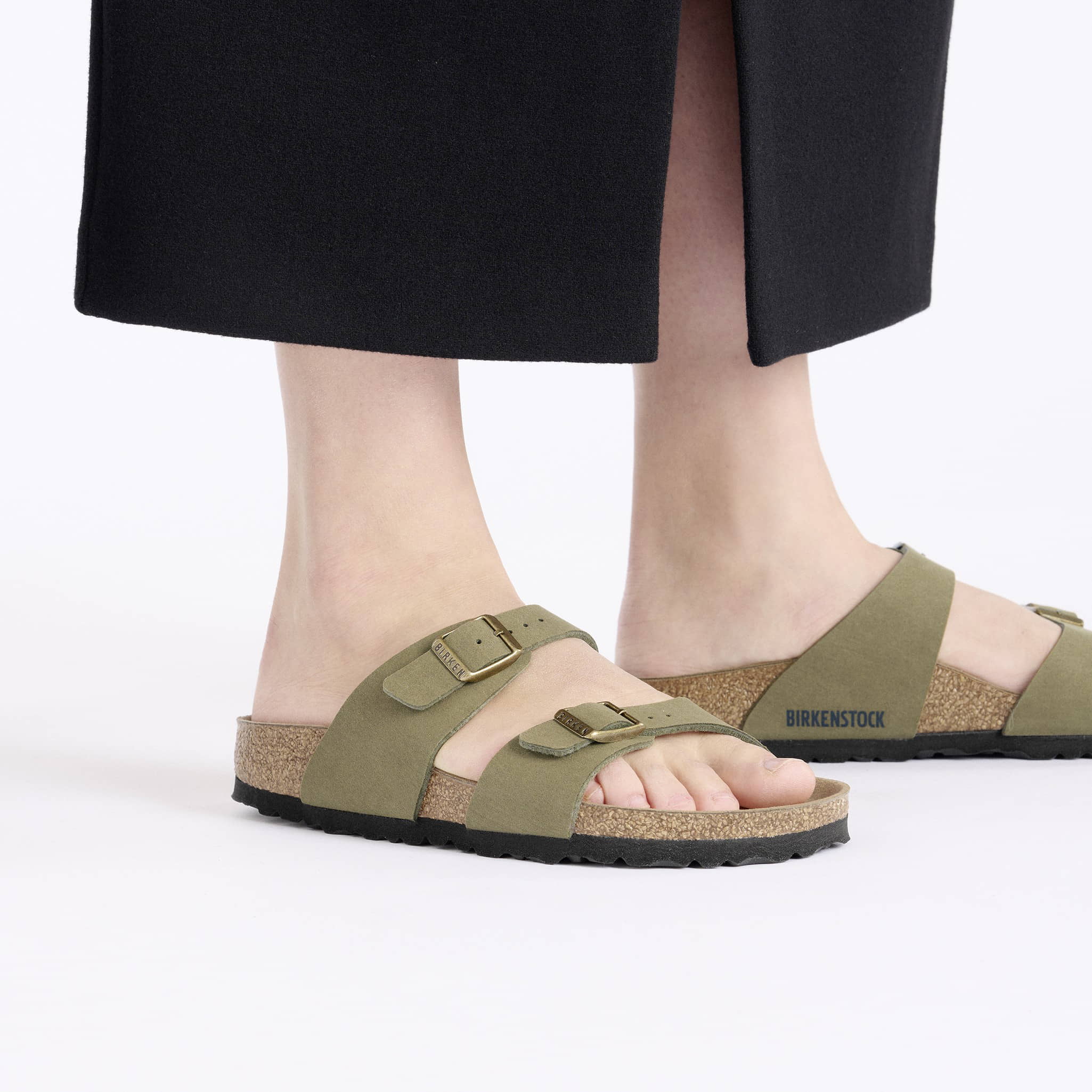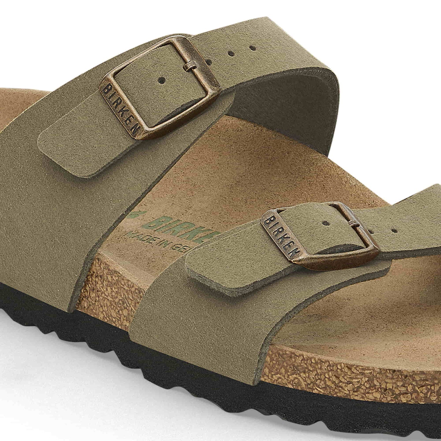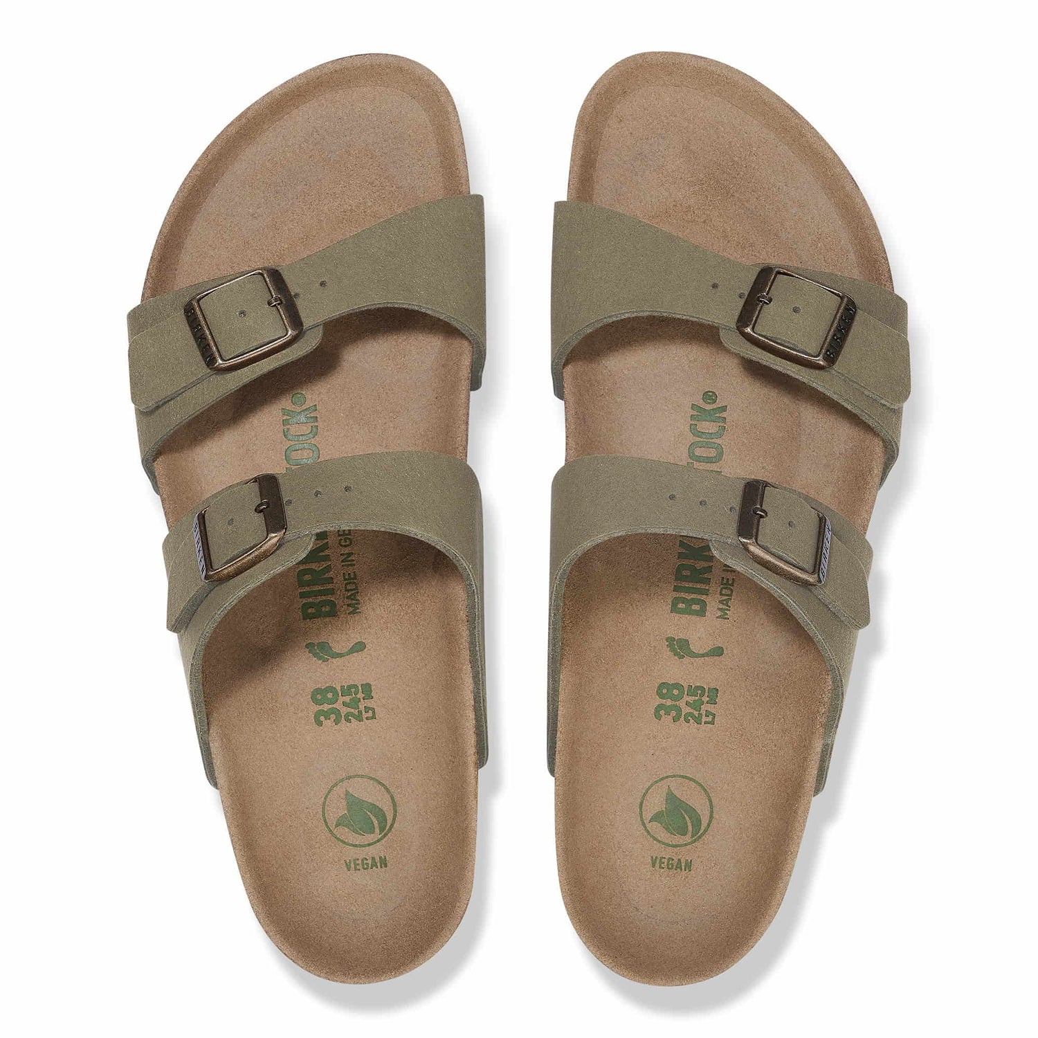 The BIRKENSTOCK Sydney proves that fashion and functionality can go hand in hand. With its two simple straps, its a real hit with women who want both high fashion and comfort. This popular sandal has been given an update in a new material, with a vegan version now available. It is entirely free of animal products, as verified by independent testing laboratories. The upper is made from a skin-friendly, synthetic material with a velvety feel.