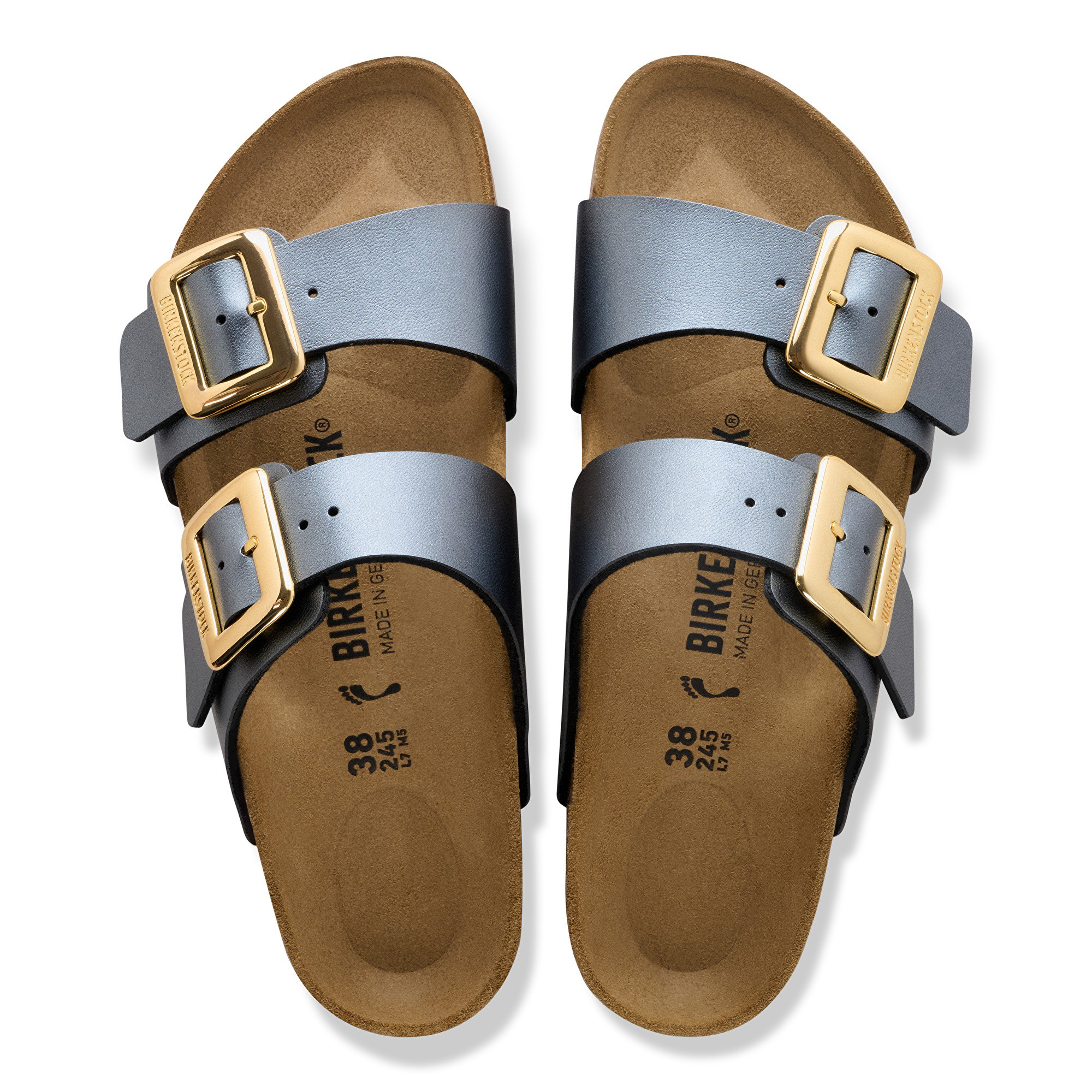 The BIRKENSTOCK Sydney proves that fashion and functionality can go hand in hand. With its two simple straps, it’s a real hit with women who want both high fashion and comfort. The shiny, gently rounded padded buckles are especially eye-catching. This sandal was reinterpreted in an extravagant metallic look. The reflective film makes this classic model dazzle and is sure to make any outfit turn heads. The upper is made from the skin-friendly, hard-wearing Birko-Flor ®.
