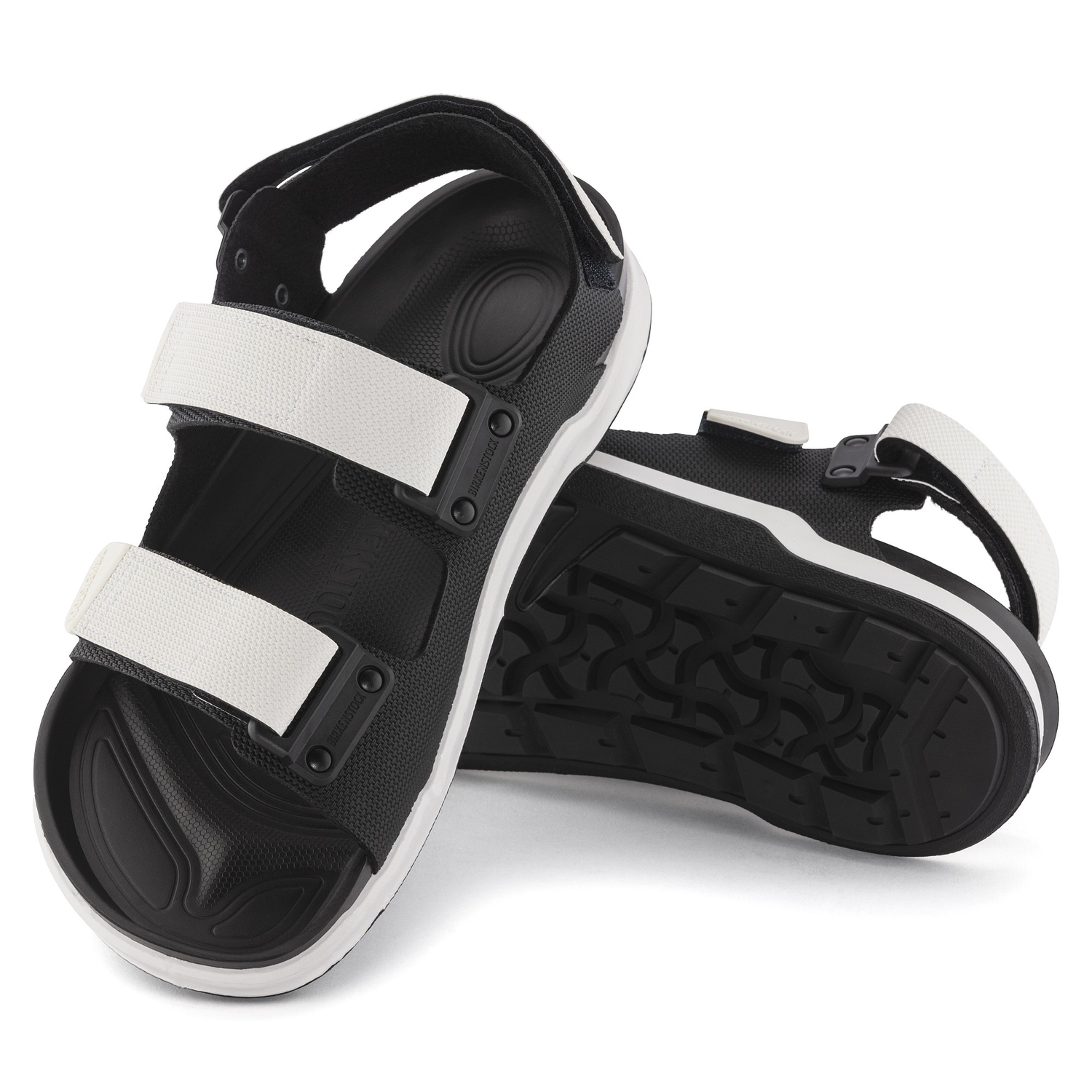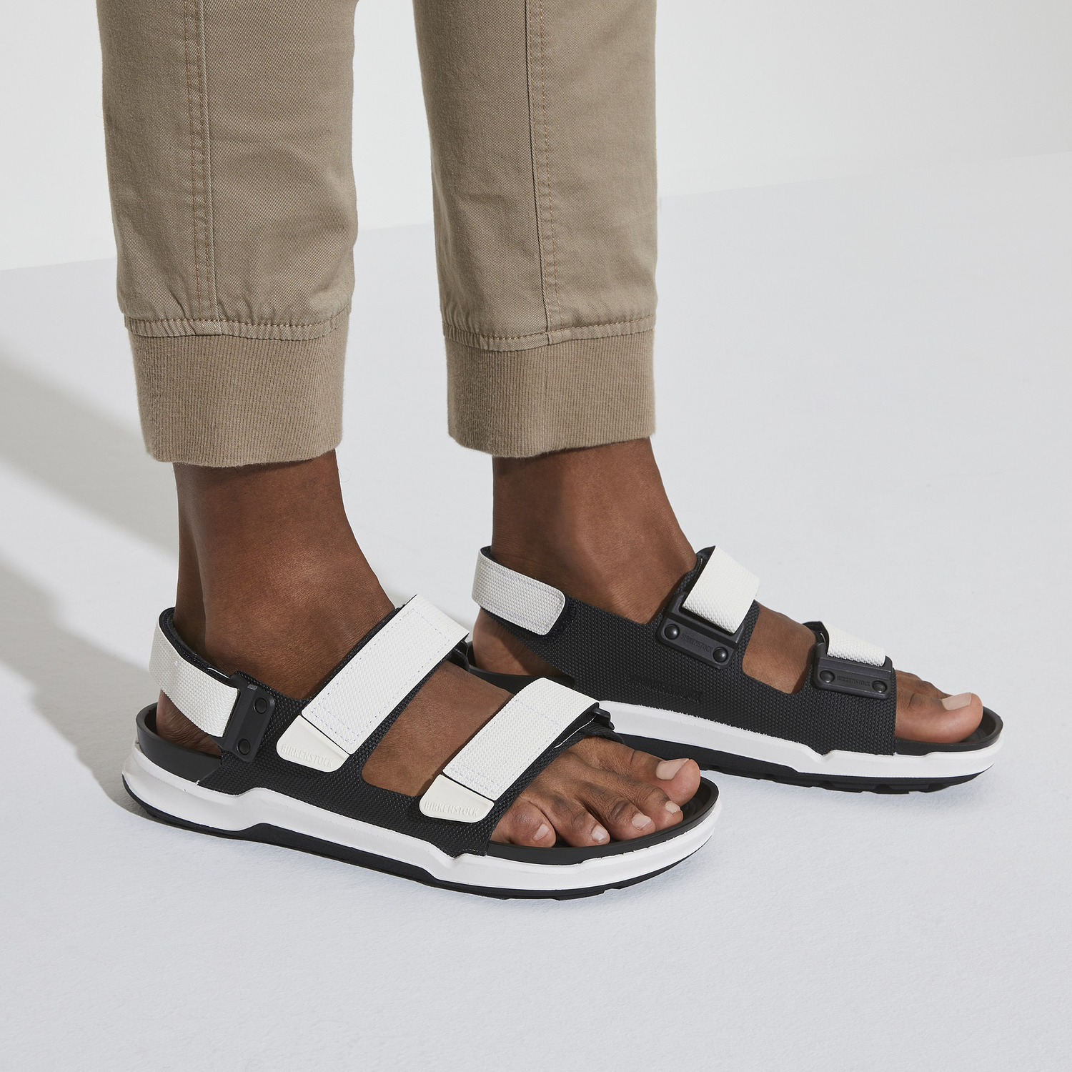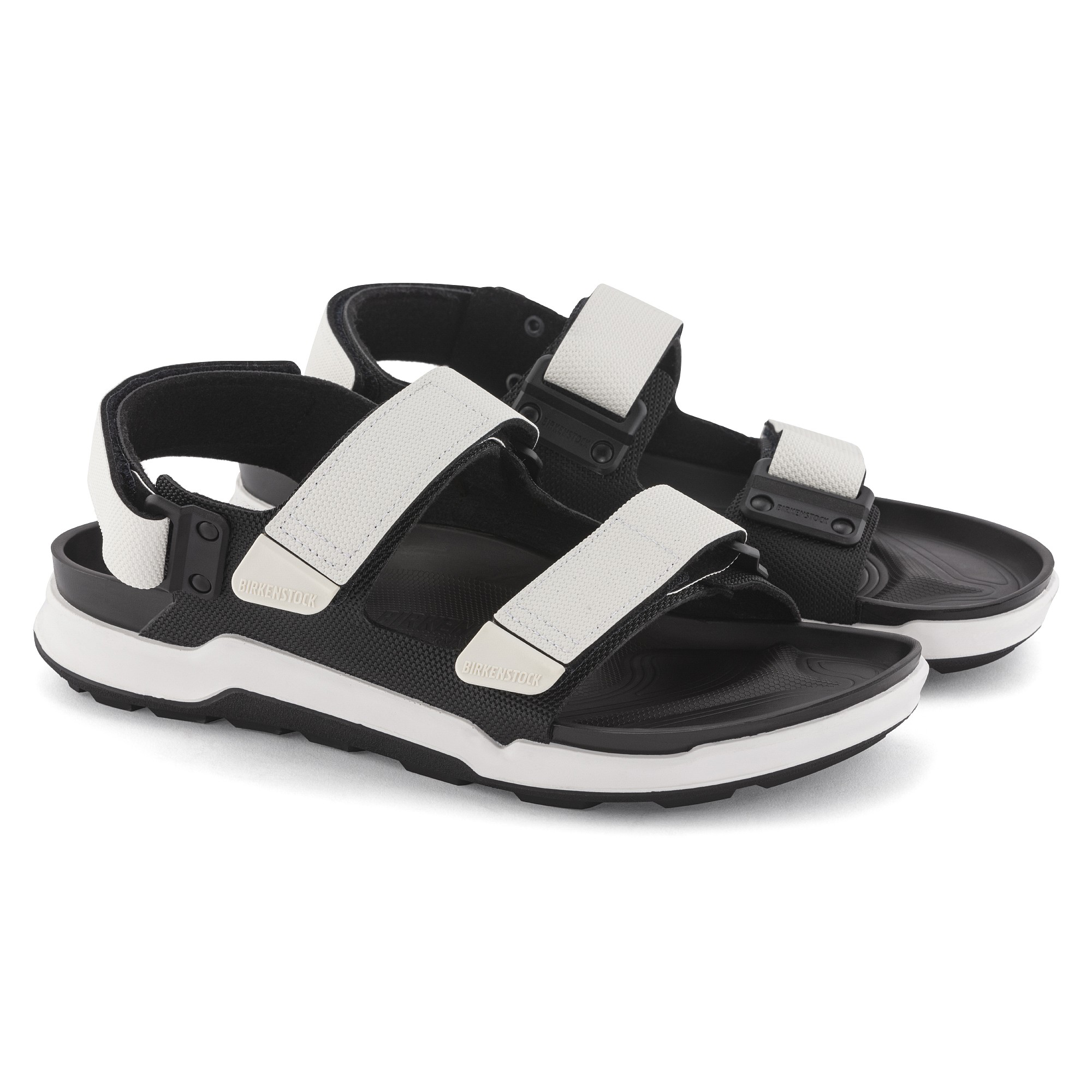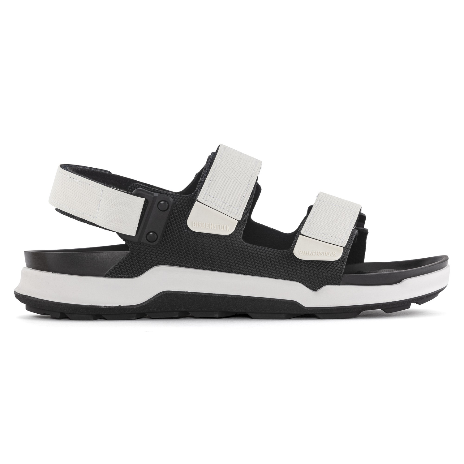 The BIRKENSTOCK Tatacoa is a variation of the classic Milano and is the perfect sandal for anyone who is on their feet all day. The pin buckles have been replaced by hook-and-loop fasteners and the heel of the sole has been reinforced. Perfect for all active and adventurous BIRKENSTOCK fans. The polyurethane sole is affixed to the footbed in two layers and therefore offers maximum flexibility, grip and durability. The upper is made from the skin-friendly, hard-wearing synthetic material Birko-Flor ® which was reinterpreted with a futuristic look.