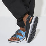 The BIRKENSTOCK Tatacoa is a variation of the classic Milano and is the perfect sandal for anyone who is on their feet all day. The pin buckles have been replaced by hook-and-loop fasteners and the heel of the sole has been reinforced. Perfect for all active and adventurous BIRKENSTOCK fans. The polyurethane sole is affixed to the footbed in two layers and therefore offers maximum flexibility, grip and durability. The upper is made from the skin-friendly, hard-wearing synthetic material Birko-Flor® which was reinterpreted with a futuristic look.