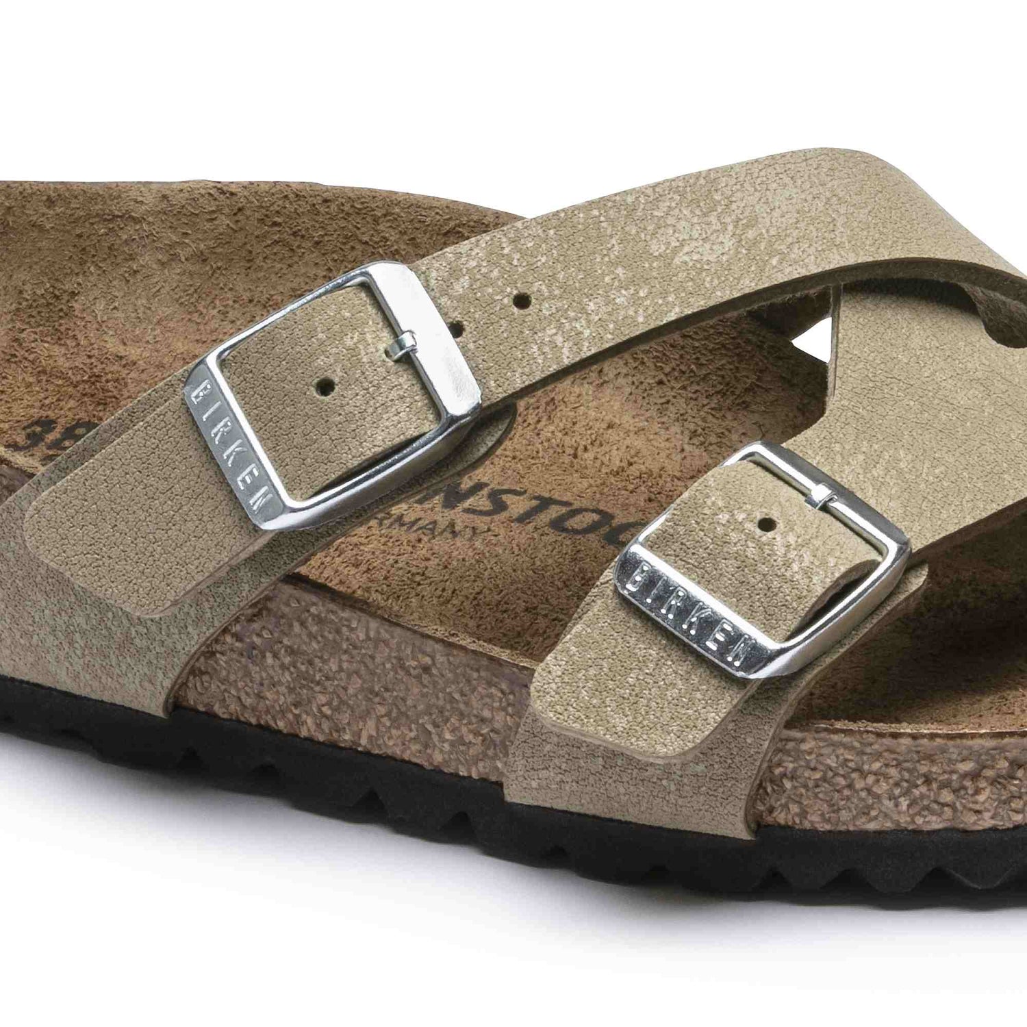 An asymmetric eye-catcher! The BIRKENSTOCK Yao is popular with people who like unusual fashion and is sure to turn heads. Here, the sophisticated interplay of material of gives the classic model a new look. Thanks to the brushed Birko-Flor®, the vegan version can easily be mistaken for genuine leather. It is entirely free of animal products, as verified by independent testing laboratories.