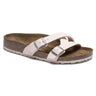 An asymmetric eye-catcher! The BIRKENSTOCK Yao is popular with people who like unusual fashion and is sure to turn heads. Here, the sophisticated interplay of material of gives the classic model a new look. Thanks to the brushed Birko-Flor®, the vegan version can easily be mistaken for genuine leather. It is entirely free of animal products, as verified by independent testing laboratories.