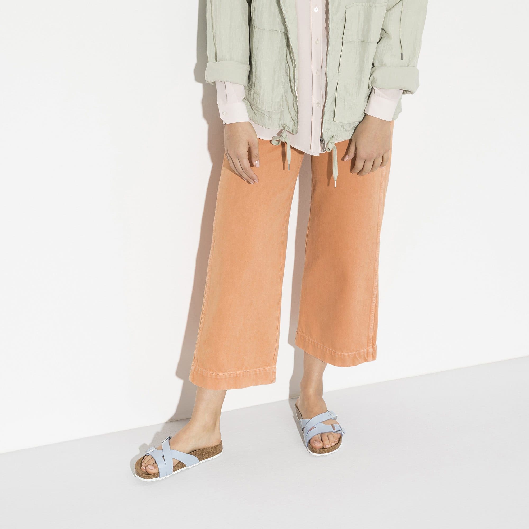 An asymmetric eye-catcher! The BIRKENSTOCK Yao is popular with people who like unusual fashion and is sure to turn heads. The upper is made from the skin-friendly, hard-wearing synthetic material Birko-Flor® with a shiny patent coating.