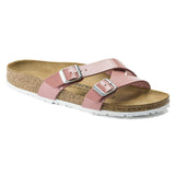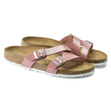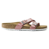 An asymmetric eye-catcher! The BIRKENSTOCK Yao is popular with people who like unusual fashion and is sure to turn heads. The upper is made from the skin-friendly, hard-wearing synthetic material Birko-Flor® with a shiny patent coating.